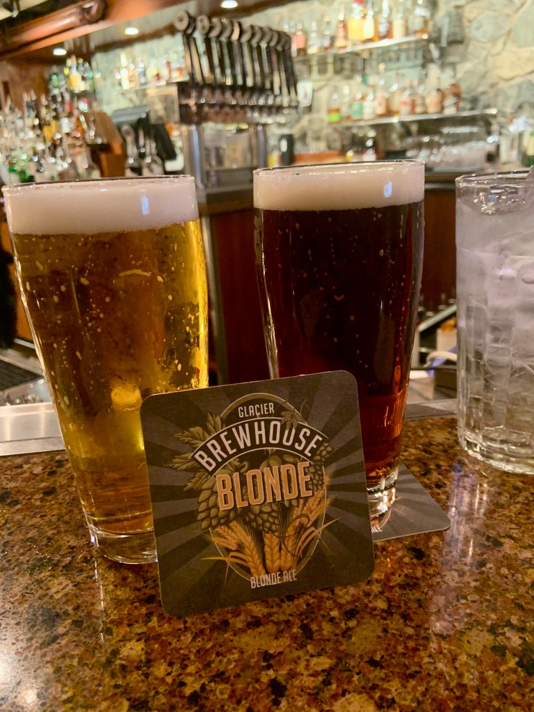 The clouds lifted and we saw some sunshine for the first time in 3 days. Dinner at the Mountaineer Grill. Great view, outstanding service, good food and I was pleasantly surprised that they had Single Engine Red from Denali Brewery on tap.