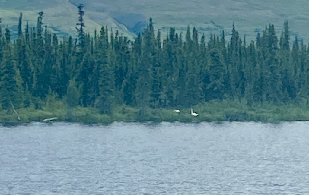 The trees get more stunted as we drive higher in elevation and the permafrost restricts their root system. Makes for easier viewing of distant mountains as well as lakes and rivers. Fireweed was blooming all along the road.