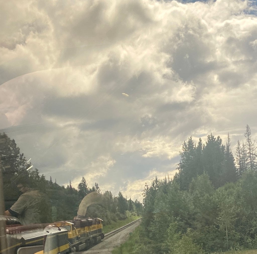 Clouds blocked our view of Denali, but we enjoyed the spectacular scenery in the mix of sunshine and clouds.