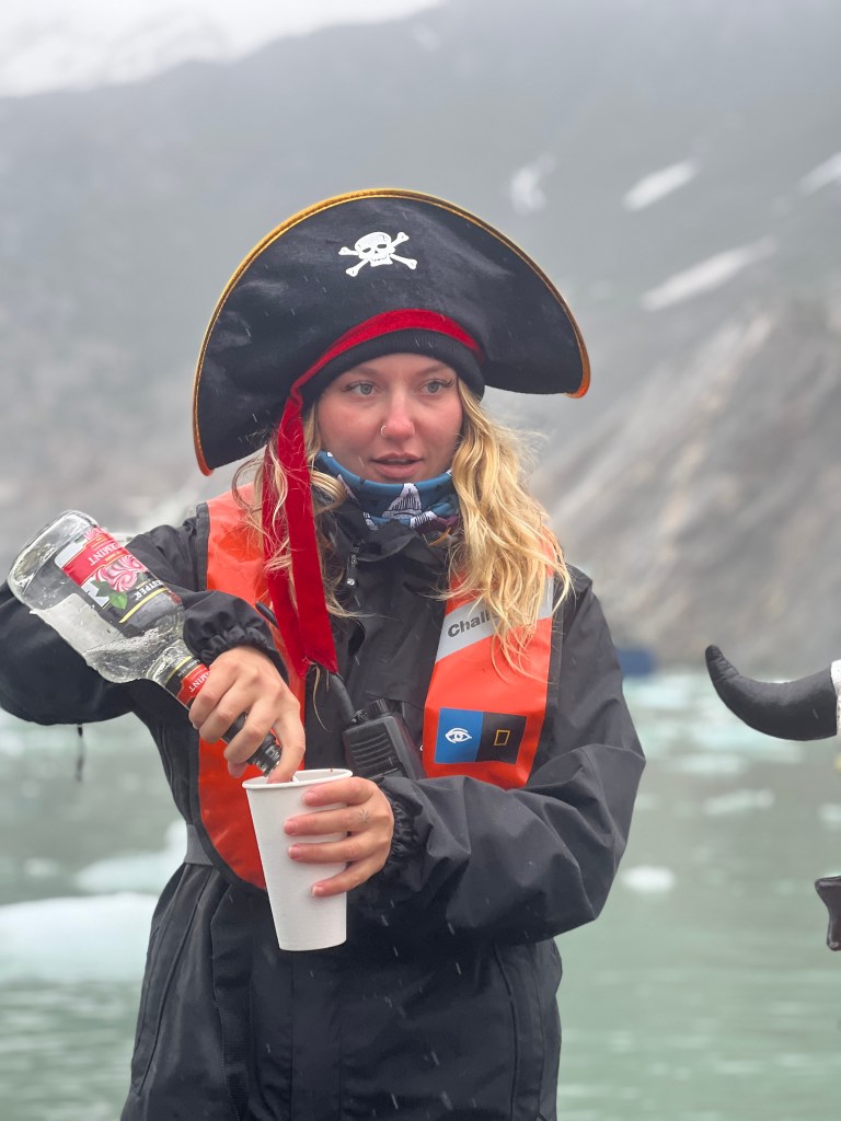 A Pirate Zodiac approached us, bringing hot chocolate and Baileys Irish Cream to take the edge of a cold wet morning in 34 degree water. They had some fun with their Pirate or Viking outfits!
