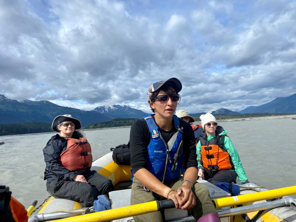 We put on rubber boots and loaded into our raft, built for whitewater. Our guide was a tiny young woman named Raven who steered us down the river and often pulled us off of low spots. The river is fed from the glacier, so it was filled with small stones washed downstream from the glacier. Water levels change every day, depending upon how fast the glacier melts, so everyday is different for the river raft guides.