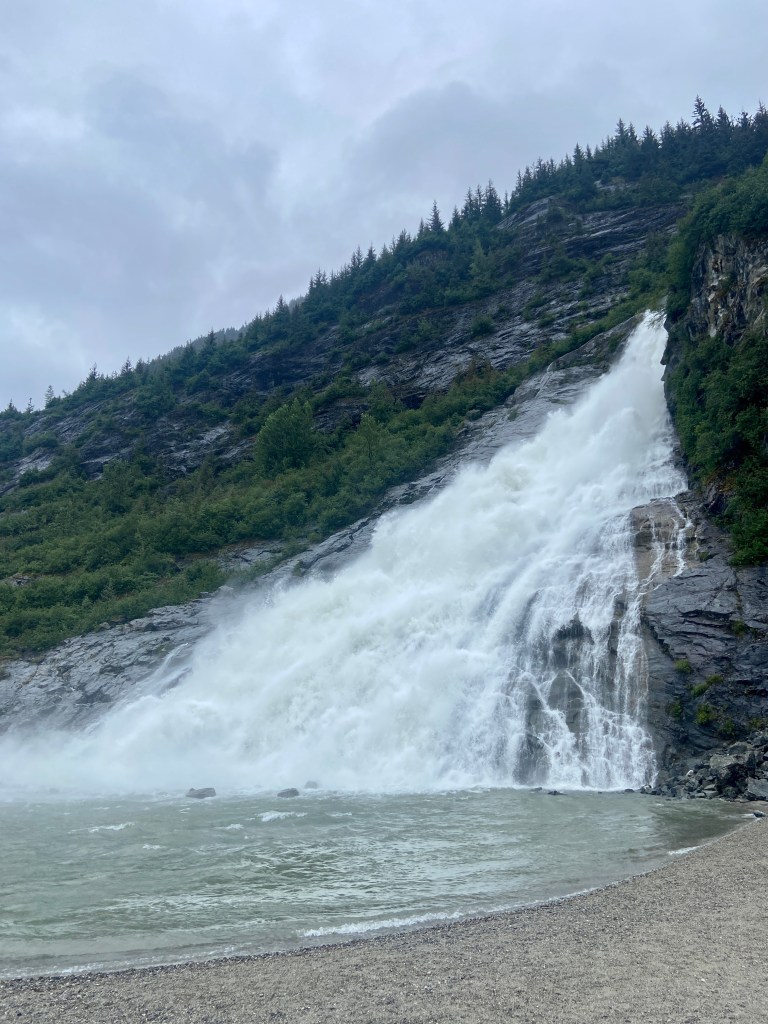 We boarded a tour bus for a trip to the Mendenhall Glacier. We hiked the the impressive Nugget waterfall at the base of the glacier.