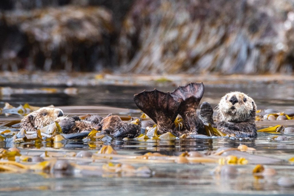 When the tide rises, it creates strong currents from the Pacific Ocean as it fills the straights and channels. The Zodiac rode the currents like a river. The Sea Lions feed aggressively on all the fish brought in by the currents. Sea Lions catch fish and they come to the surface to shake the fish to break it up to swallow whole. Huge, 2,000 lbs Sea Lions came right up to the Zodiac. We floated in the middle of a pack of Sea Lions. Incredible!