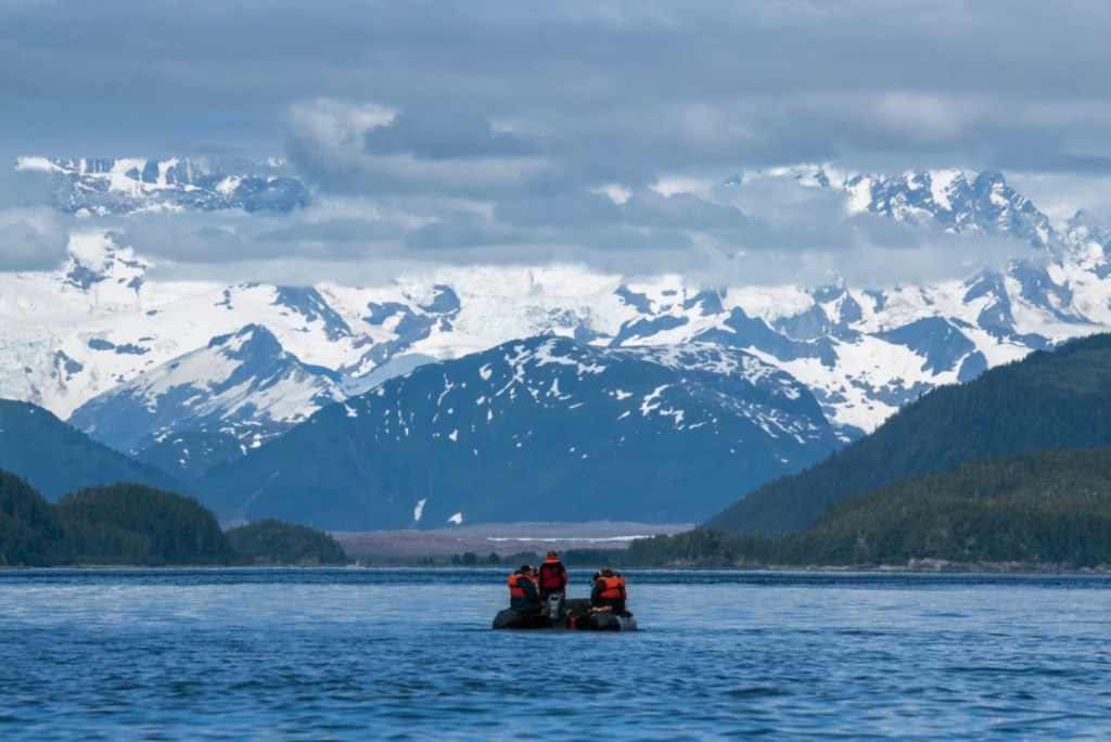 Sunshine and blue skies were a welcomed surprise! The Zodiac ride was amazing! We went around a corner and we looked straight into the snow covered mountains in Glacier Bay National Park.