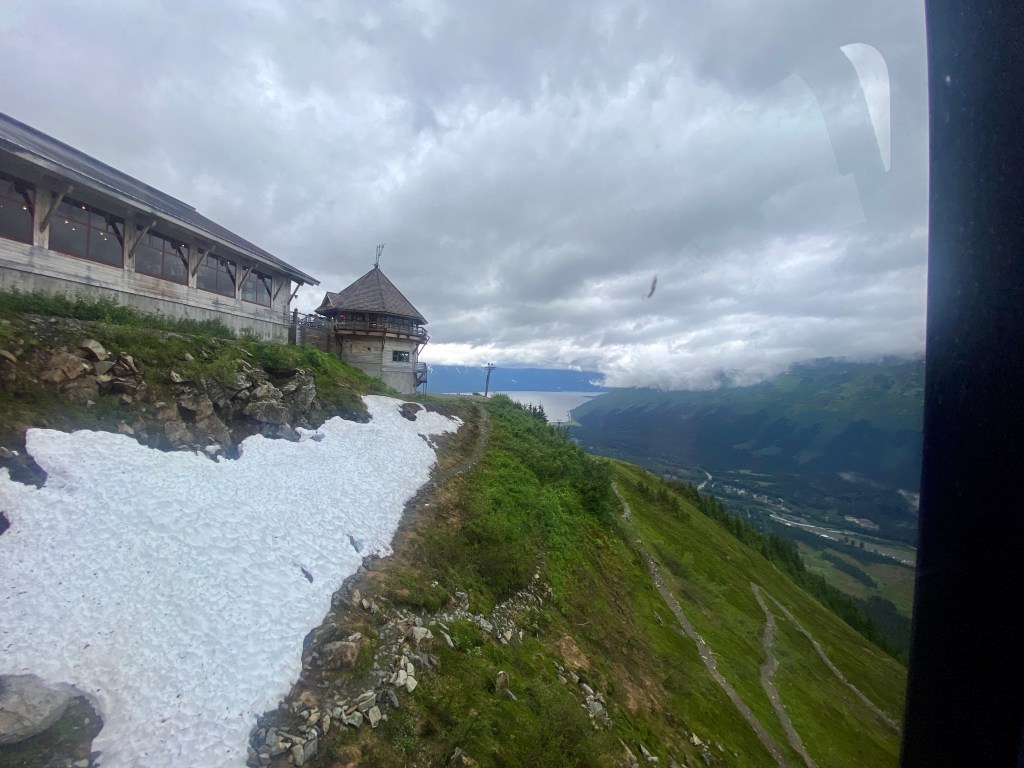 After lunch, we took the tram up Mount Alyeska ski resort. An impressive view to go from basically sea level to 3,000 feet. They typically get 60 feet of snow each year, last year they got 100 feet!