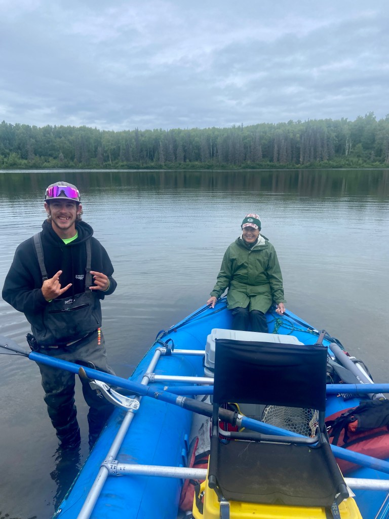 We met Mason, our fishing guide. He took us to a small lake called South Rolly in the Nancy Lake State Recreation Area. Motors are prohibited, so it was a quiet area. We are now used to getting in and out of rubber rafts.