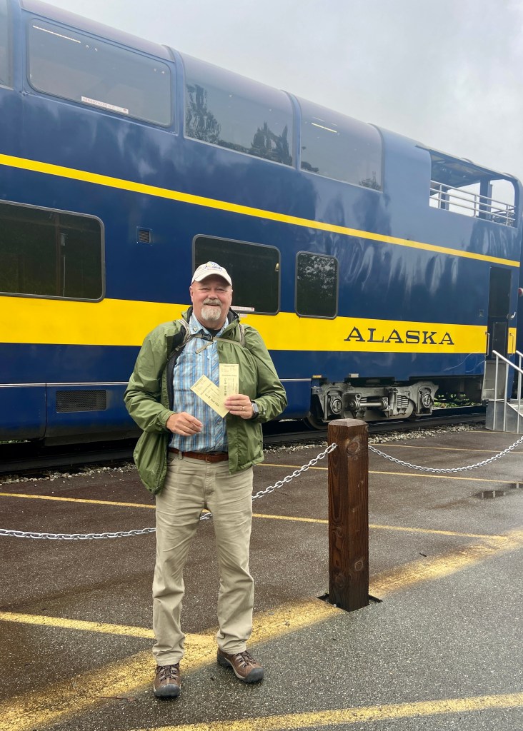 After steady rain all night, the rain stopped as we checked out of our cabin and we took the shuttle to the Talkeetna train station. For many years, the Alaskan Railroad was the only means of transportation to get from Seward to Anchorage to Fairbanks and past what is now called Denali National Park. A very clean comfortable and roomy way to travel. We upgraded to the Gold Star train with the large windows, perfect for viewing wildlife and the beautiful scenery.