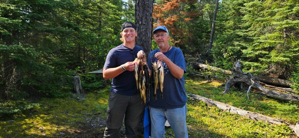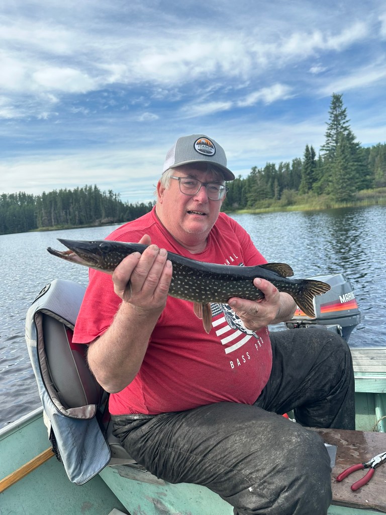 Again, Mark’s boat never left the home bay and caught lots of big fish. Tana completed her string of catching a +20″ Walleye every day! Tana also caught a 28″ Northern. Eric caught the biggest stick!