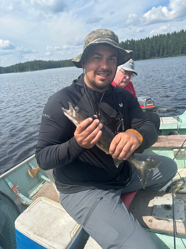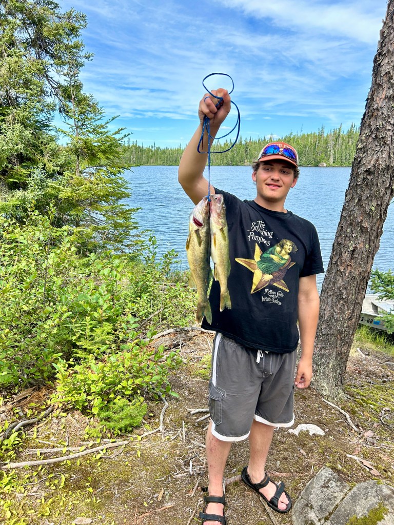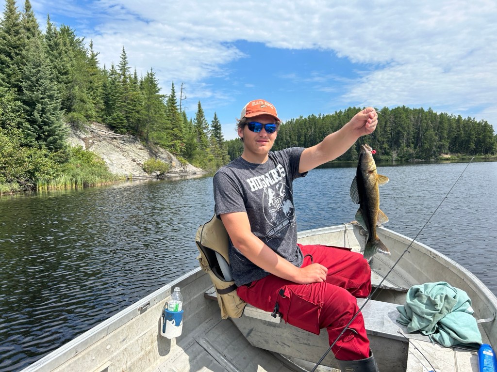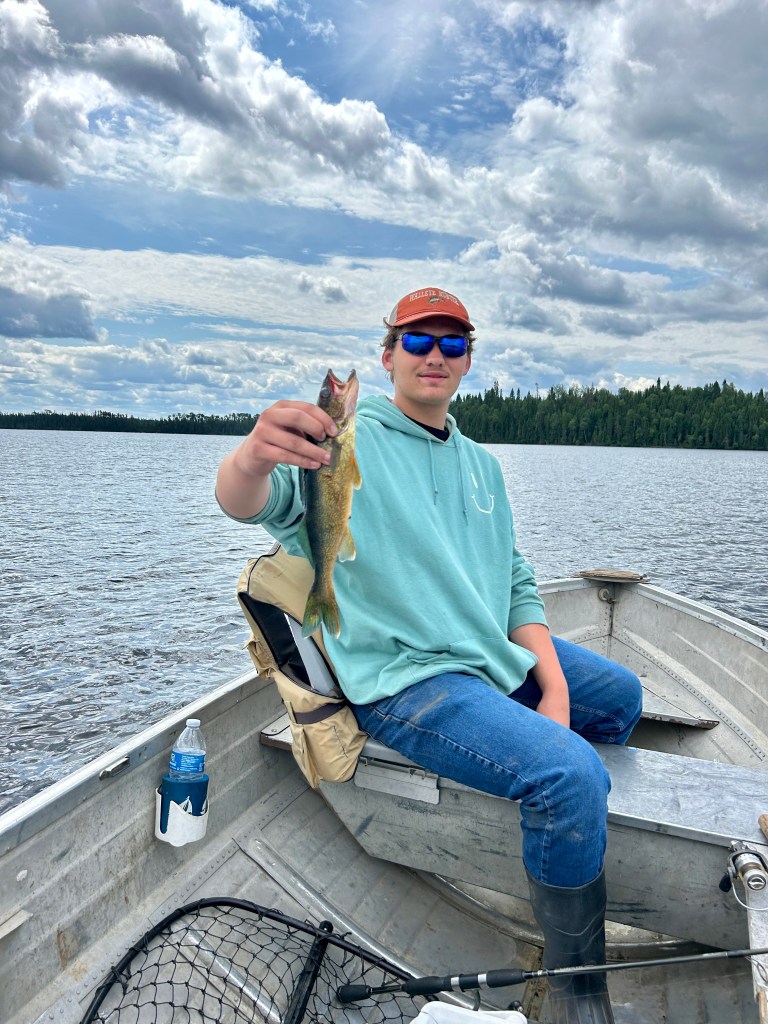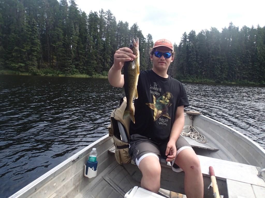 Ben caught a 18″ Walleye right away on Clear Jack Lake.