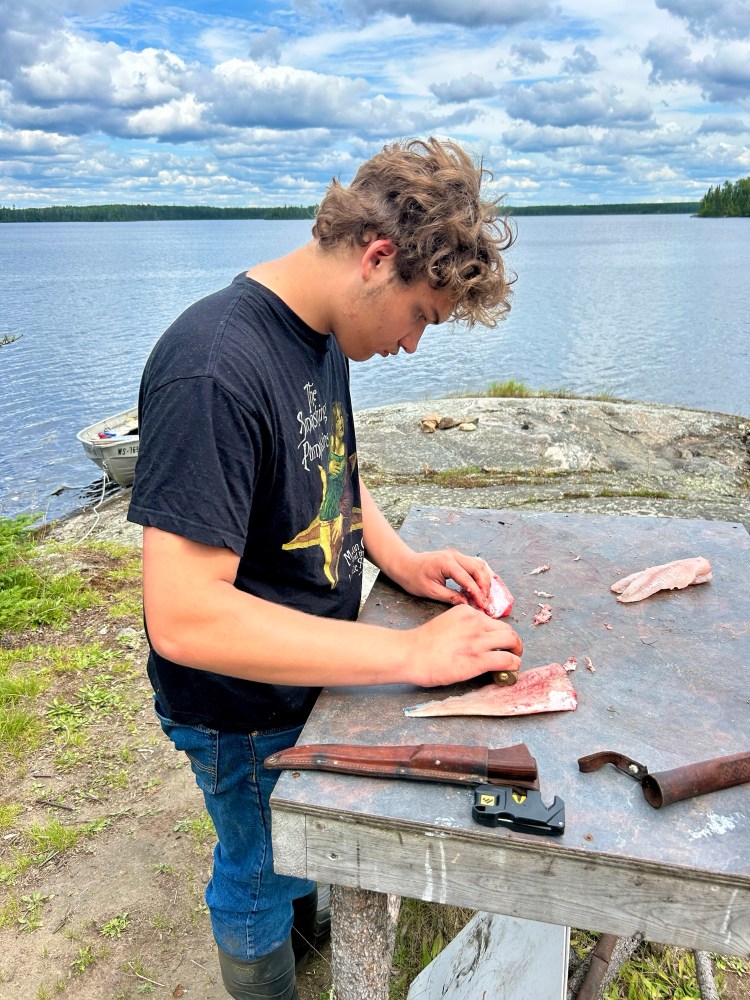Alex cleaned all the fish. He is very careful with the fillet knife.