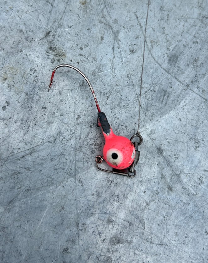 I caught a fat 36″ Northern. The big fish made several runs and jumped out of the water. Alex did a great job netting the big fish. The fish bent the hook on the jig and spit it out once he was in the boat.