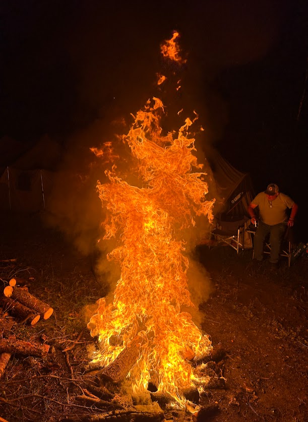 Fried fish, cheese curds and onion rings for dinner. Eric dumped the oil on the campfire to make it visible from space!