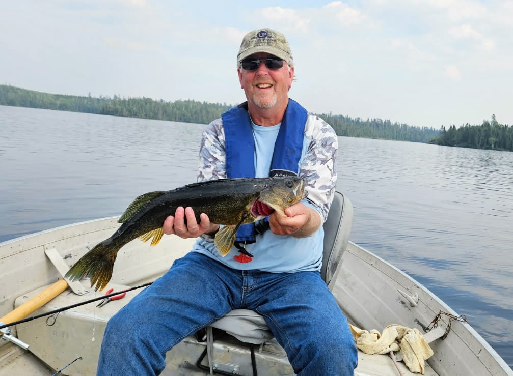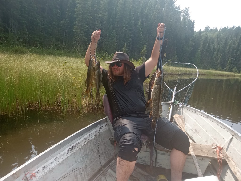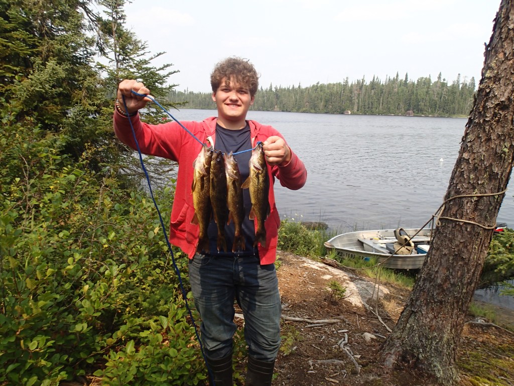 Ken and Cade caught 15 Walleyes over 16″, including Ken’s 20″. Cade hurt his knee pulling the boat over the beaver dams into Clear Jack Lake. He went back to camp. Ken fished with Mark and Kylie the rest of the day and had a triple!