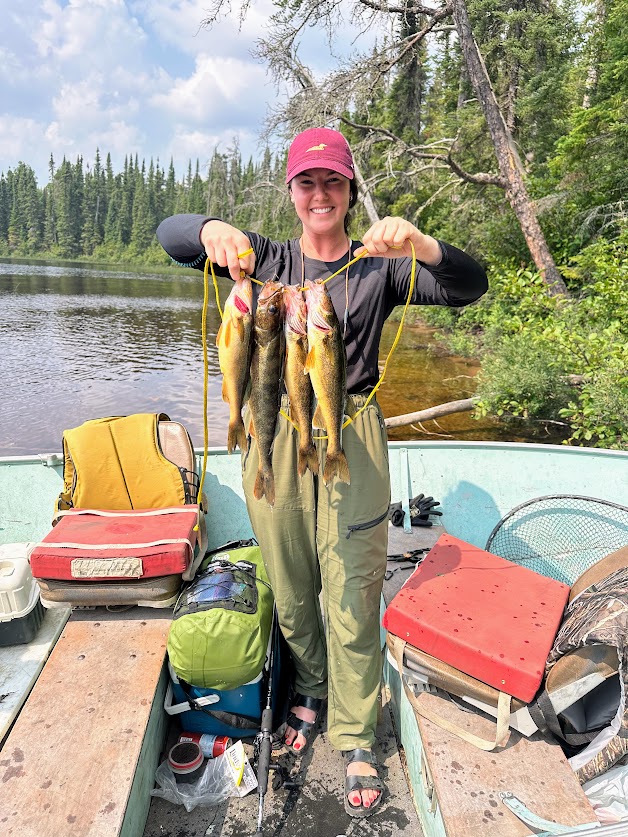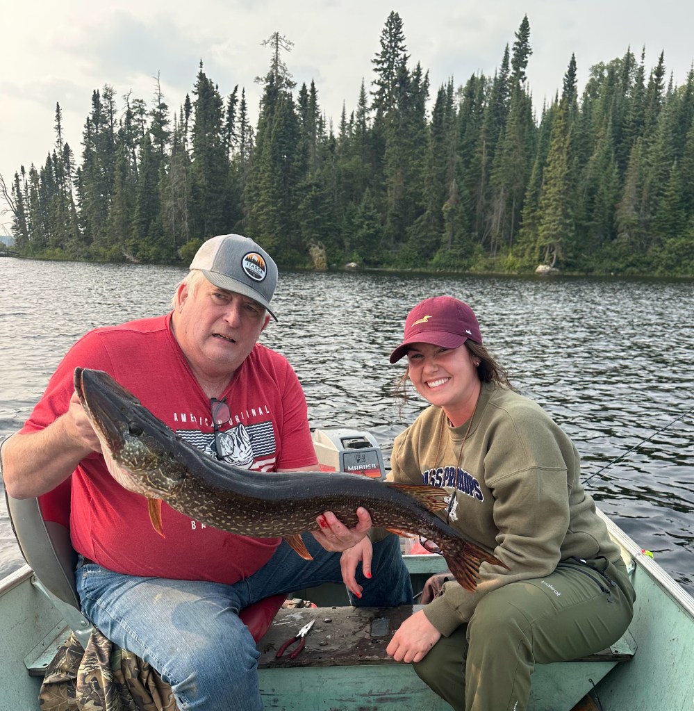 Tana caught a 38″ Northern! Tough fight, but she played the fish well before Dad netted the monster.
