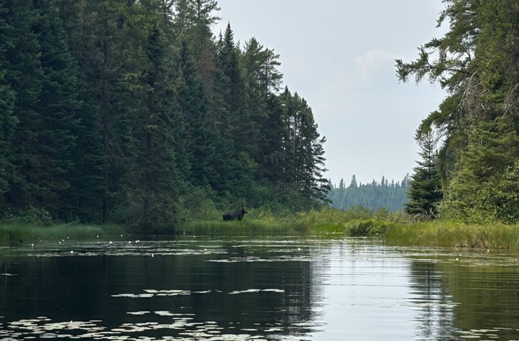 Mark Wanous and Kylie pulled their boat up to Clear Jack Lake through 3 beaver dams. They saw a moose in the lily pads!