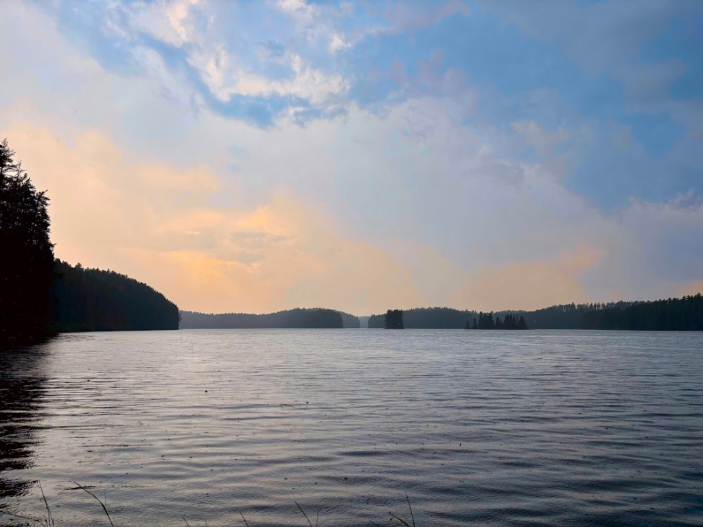 The smoke and haze from the wildfires in western Canada turned the sunrise over our lake to a bright orange.