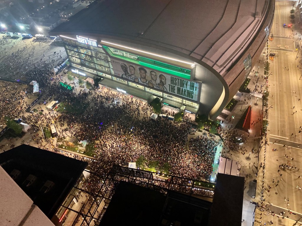 The town was buzzing with excitement over the Bucks, filling the Deer District for each game. Even Game 5 in Phoenix, when Kara joined 65,000 people to watch the Bucks win on the big screen TVs at the Deer District. Wild!