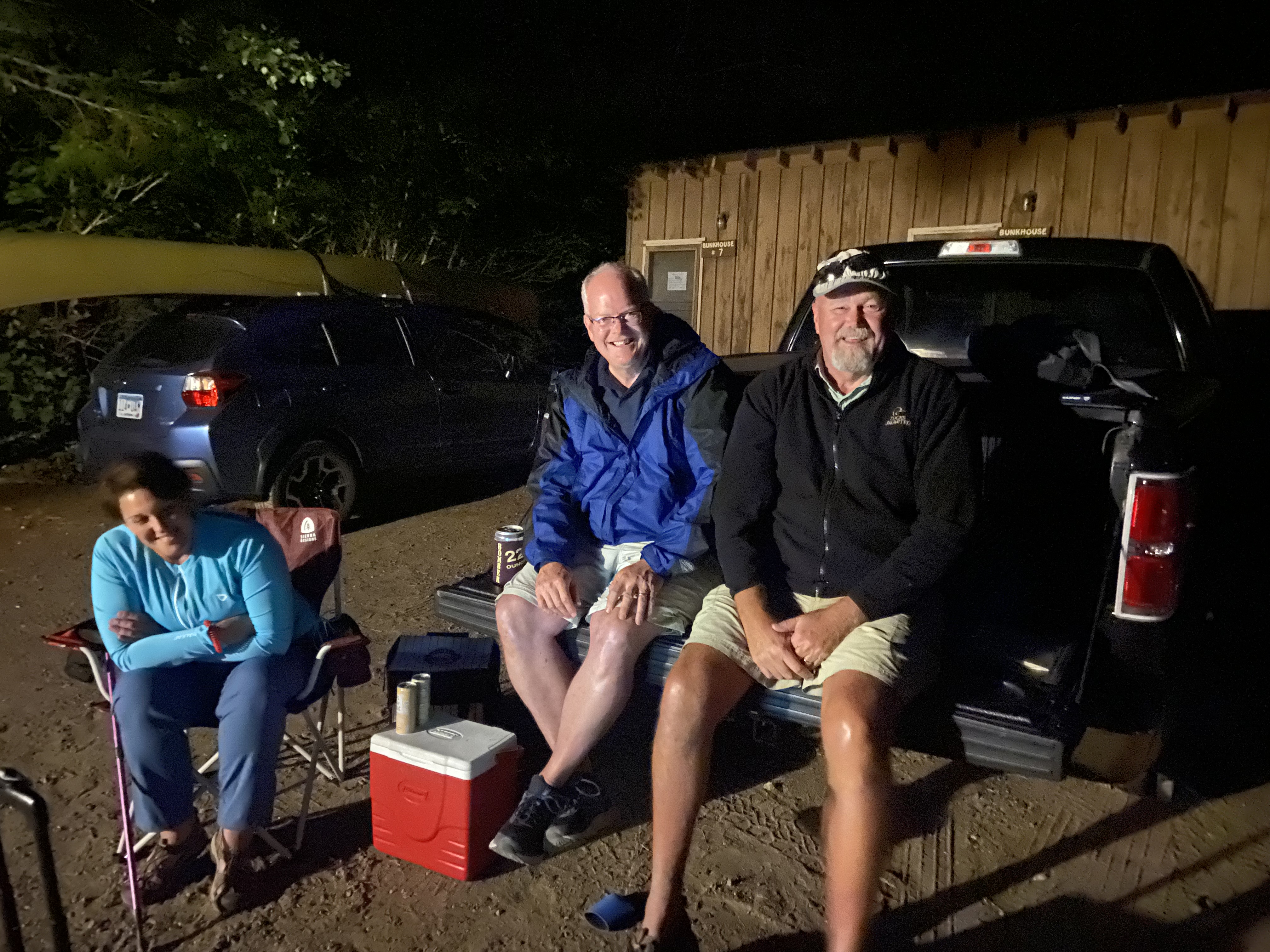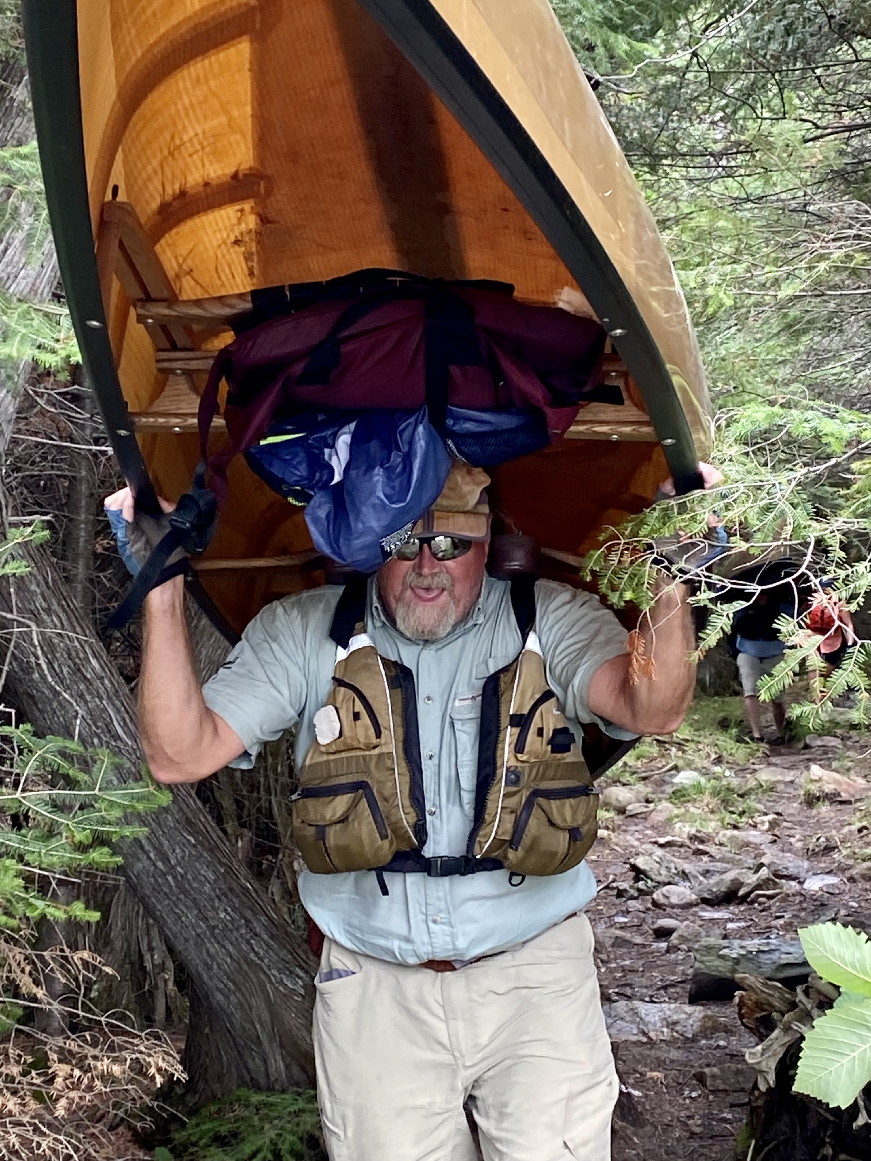 At Sea Gull Lake, we talked to 3 guys from Colorado and a 3 generation family of 2 grandparents, 2 parents and 3 little kids tackle the portage. When we walked back to Alpine Lake, we were reunited with our new friends from the Bucks game in front of the bunkhouse. They were set to portage all of their gear and 2 canoes in a single trip – very impressive – good to be young and strong!