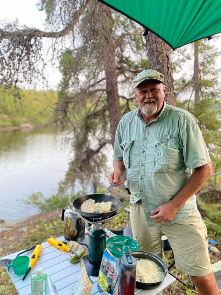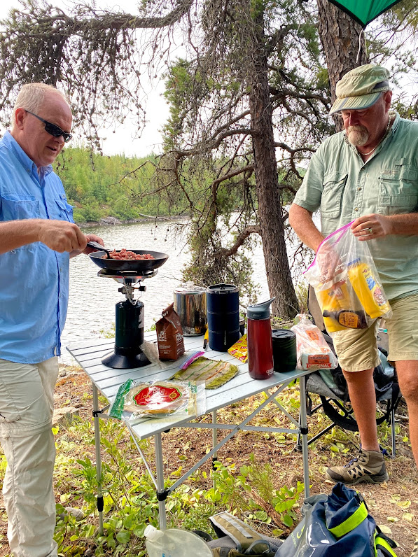 Watched a bald eagle and a loon fly past our camp. Made biscuits and gravy with eggs again for breakfast.