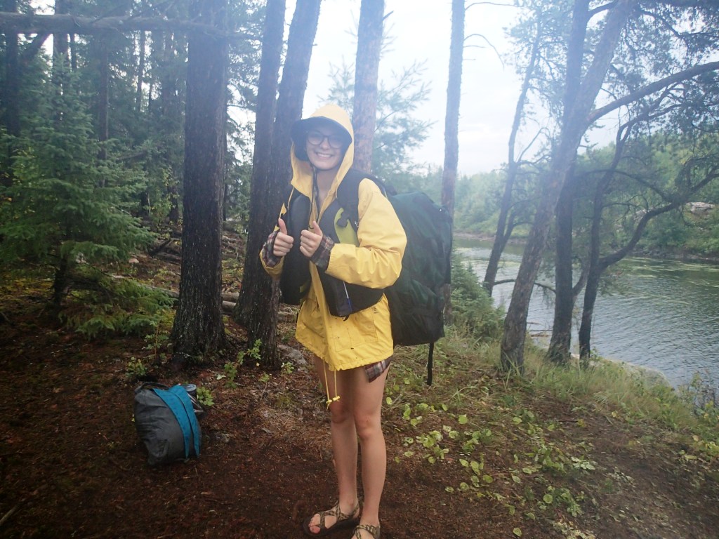 Strong thunderstorms rolled through twice overnight. Started coffee and made pancakes for breakfast. Tim and Kara packed up the wet tent and gear. Grace hauled the packs to the water.