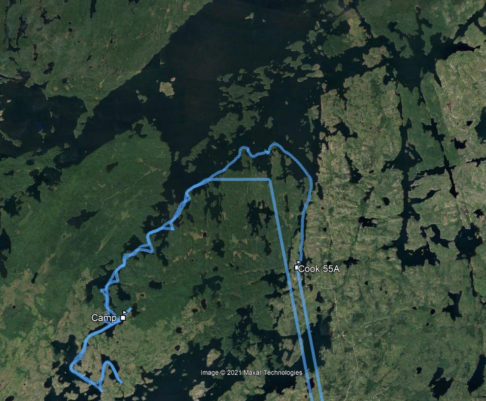 We took one wrong turn down a bay thinking it was the channel back to the truck. Bad time for my GPS battery to go out. Other than the straight lines, this was the route we took and the map sections we used.