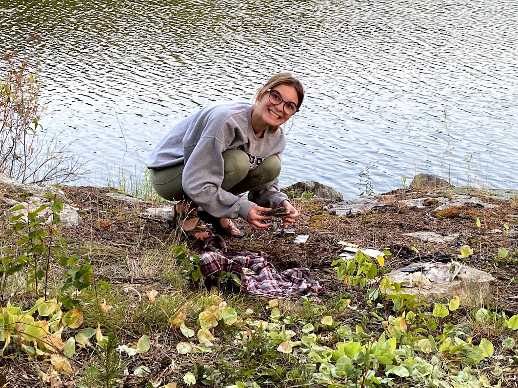 We talked to a couple of guys that were having good luck fishing in our little bay. We decided to give fishing a try and we are glad we did! Kara and Tim started fishing first as I tried to find weight to add to the front of the canoe to better balance Grace and I in the empty canoe. After a few failed attempts, we were ready to fish! Tim and Kara had already caught 3 small Walleyes along the rocks. They let Grace and I try the spot and we had a blast! Grace caught 2 Bass and one Northern, but struggled to get them into the boat. I caught 3 Bass, one keeper for dinner. Kara and Tim caught a couple more small Walleyes and a small Northern.