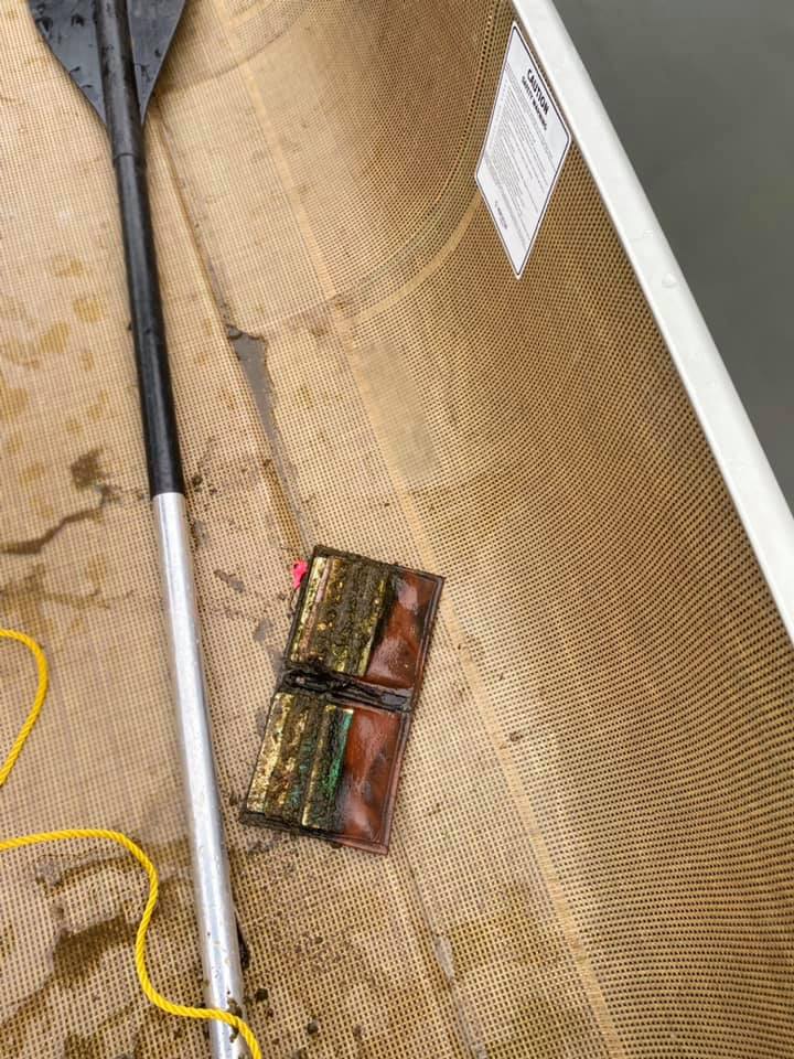 Kara noticed a wallet on a rock in 4-5 feet of crystal clear water. They could not snag it with a Rapala, so they asked to use one of my big jigs and that did the trick! When we inspected the contents of the wallet, we did not find any money, but we found that Joseph Warren Schmidt of Lino Lakes, MN – a suburb north of Minneapolis – likely lost this wallet between 1992-1995. From the drivers license, employee badge and credit cards, we hope we can find the rightful owner and return his wallet.