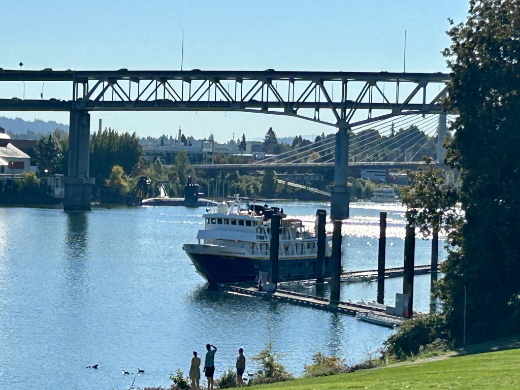 Ship arrived in Astoria OR in the morning. Awoke to the smooth voice of our expedition leader Jim at 7:00. Coffee and breakfast was nice. Foggy and cloudy.