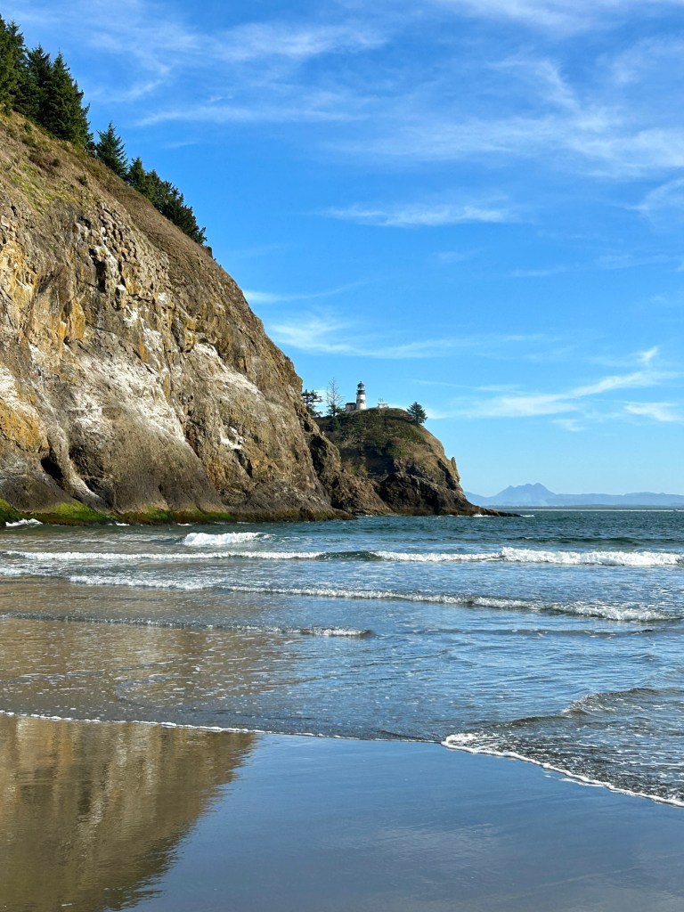Waikiki Beach is a smooth black sand beach with beautiful views of the Cape Disappointment lighthouse.