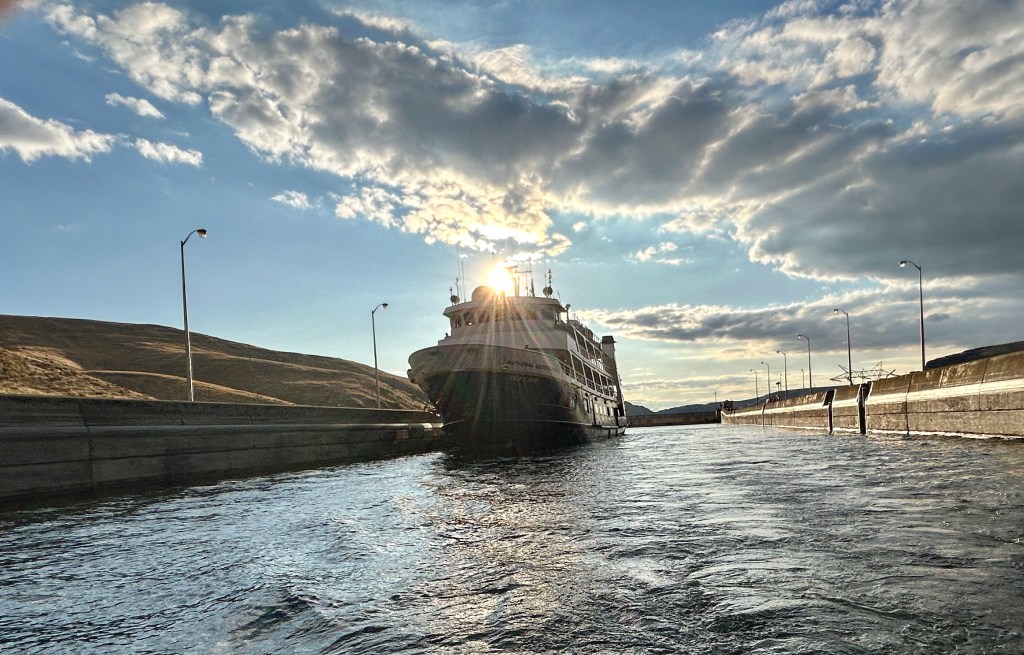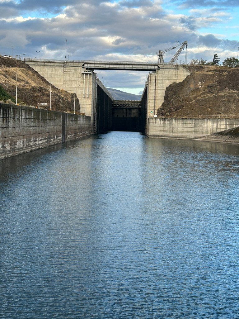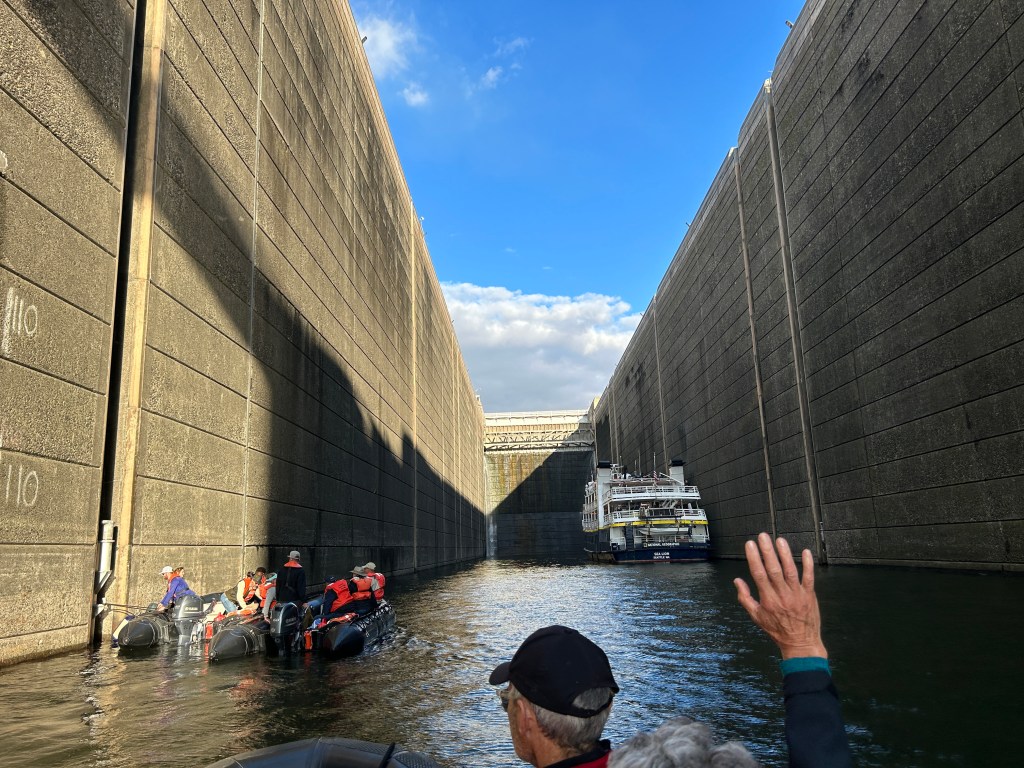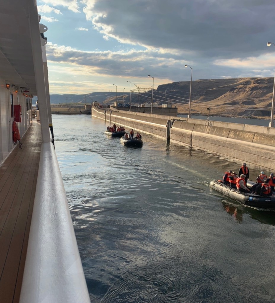 Took Zodiacs through the Little Goose Lock and Dam. 800 megawatt. Very cool to be on the Zodiac next to the ship as the water rises.