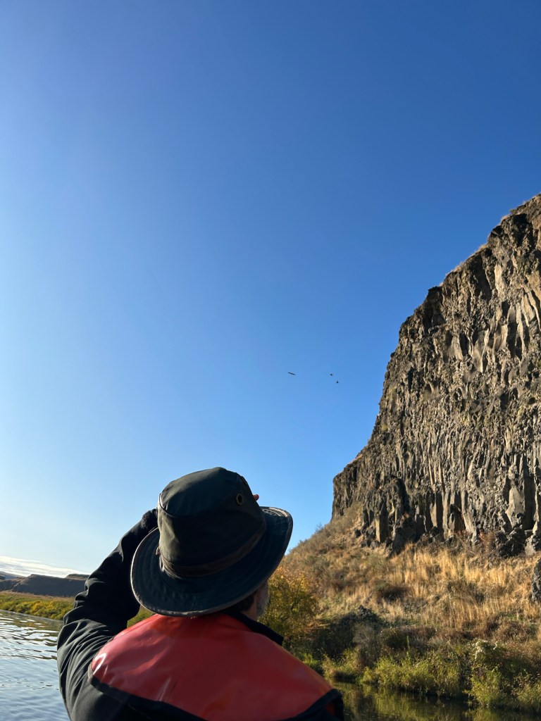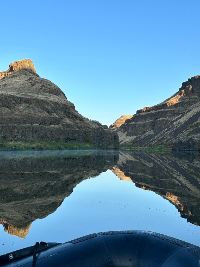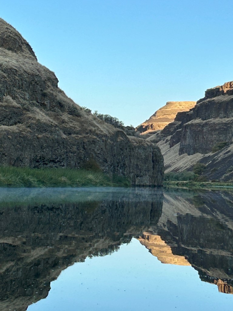 Up early for breakfast before taking the zodiacs up the Palouse River. Saw a mink, bard owl (very cool), rooster pheasant, coyote, red tailed hawk , bald eagle and a few ravens. Beautiful cool morning as the sun crept over the canyon walls. The water was like glass. Great reflections of the canyon walls.
