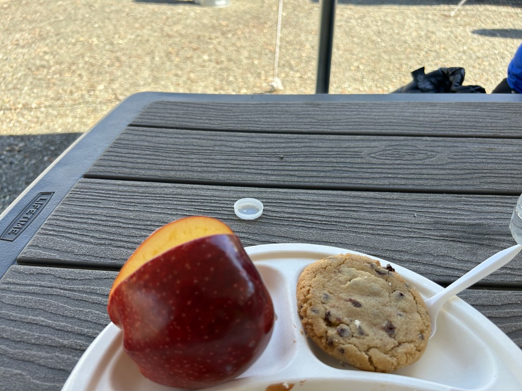 Lunch at Garden Creek Ranch. Chinese gold miners planted fruit trees in 1860. I picked an Apple from the tree. Saw deer and wild turkey in the orchard.