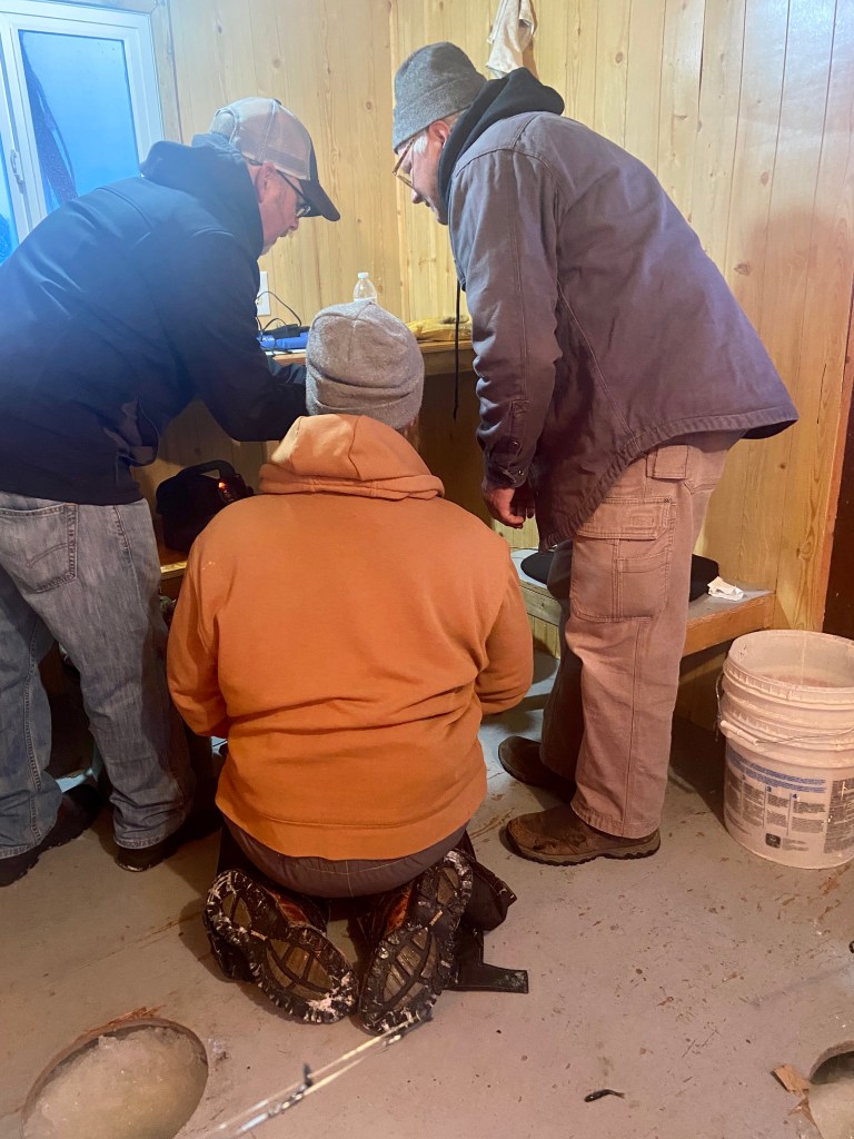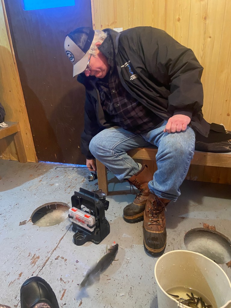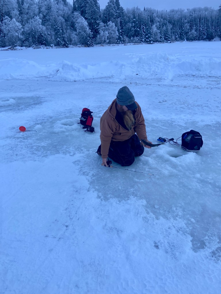 Wayne, the owner of Clark’s Camp, told us that the best fishing was during low light, so we were up early and excited to go fishing. The ice houses are located just 50 yards from shore.