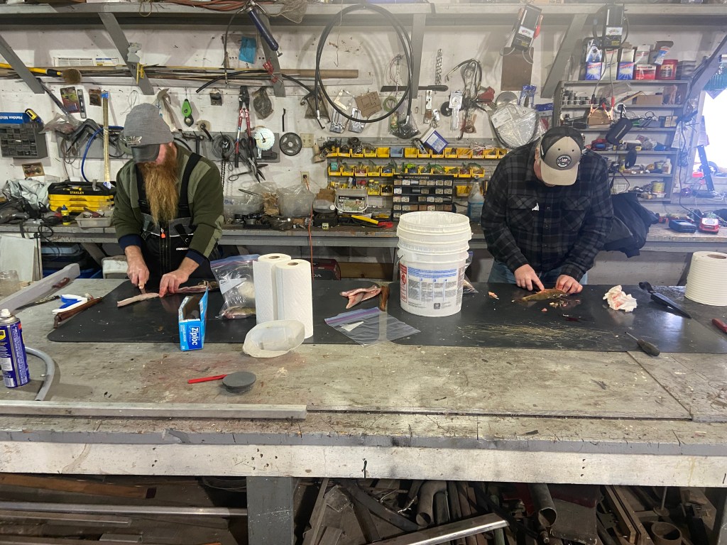 After we reached our limit, Jeff, Mark and I headed back to clean fish in Wayne’s nice, heated shop with plastic cutting boards.