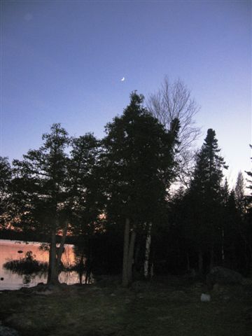 Bob caught a nice 24″ Walleye. Nice sunset at the boat landing. A small crescent moon appeared at sunset. Pat provided instruction as his son Ken listened intently with Steve.
