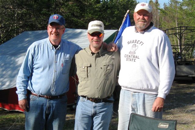 Jeff gave Tim and Steve a lesson on how to catch 24″ Walleyes. Steve tried to keep pace with a Northern or two. Tim spent most of his time with snags and tangled line. With 500 lbs of Pelton men in the front of Jeff’s small boat, we did not try to run Cut Rapids High water levels had the rapids churning.