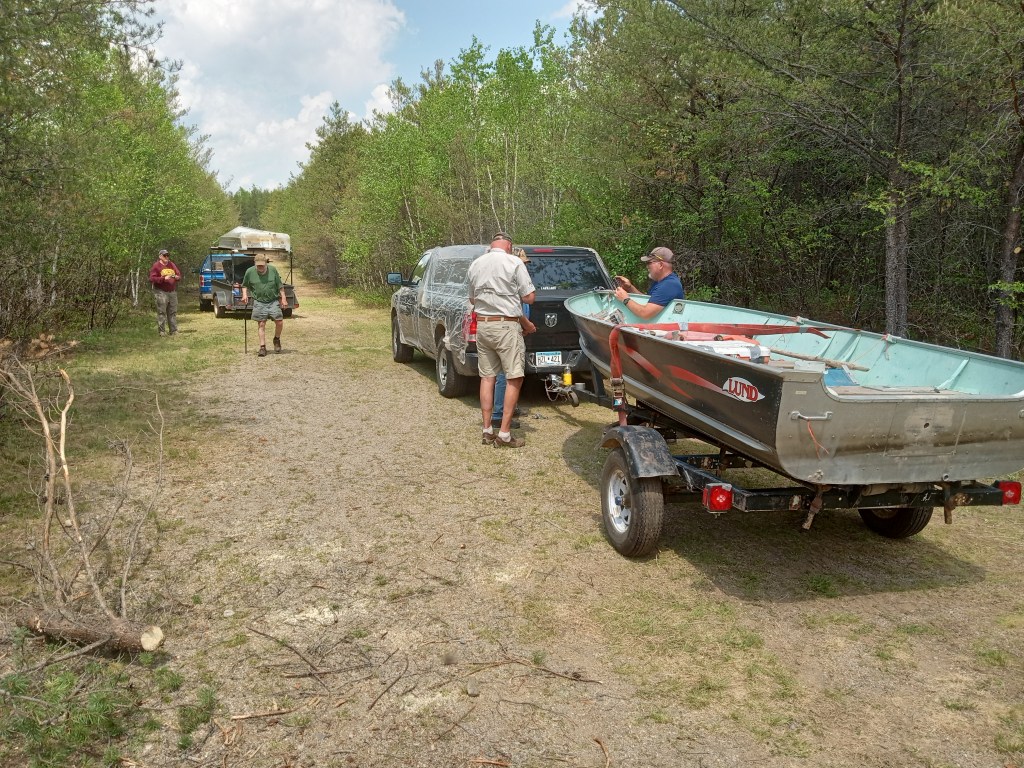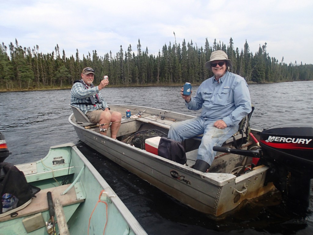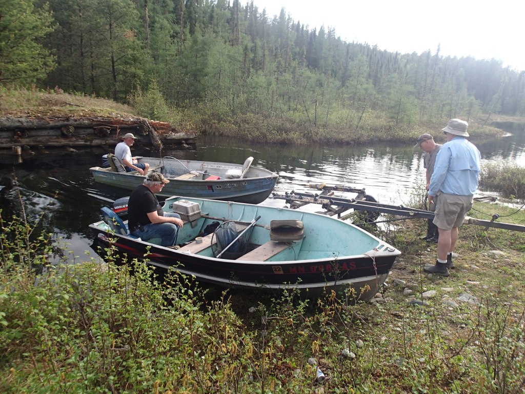 A Google search for a Tim Horton’s returned 30 results and I choose the one near Hwy 61 but with no seating :(. Ate breakfast sandwiches standing at the trash can before heading North. Mark C. had ordered 2 lbs of leaches at the Silver Minnow Bait Shop. Little traffic on Hwy 527 on a beautiful day. Saw a bull moose, but he disappeared into the woods before we could take a picture. Hwy 811 was dry and dusty – loggers were actively loading timber onto trucks.