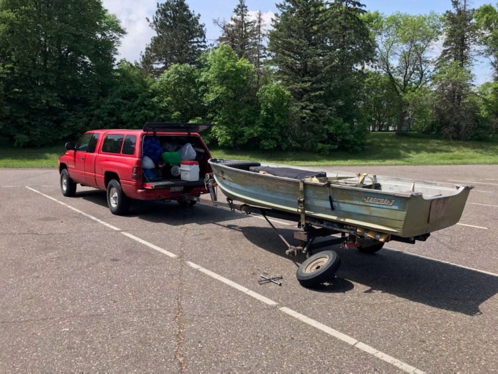 After stopping at Sammy’s Pizza, the Owatonna guys stopped at a rest area north of Minneapolis. They were surprised to find loose lug nuts on Mark Wanous’ boat trailer. Very fortunate to find it before it came off!