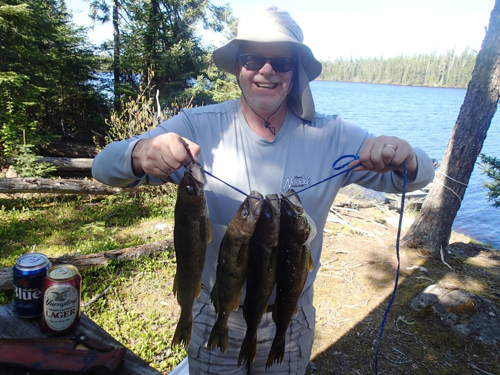 Perhaps the best weather and finest fishing trip we have ever had! A small, but “experienced” group of friends and family continued the Memorial Day wilderness fishing trip tradition. Brothers Steve & Tim Pelton and Mark & Ron Cunningham were joined by long lime friends Fred Bouwman and Mark Wanous. Great to have Tim back in camp after a long absence.