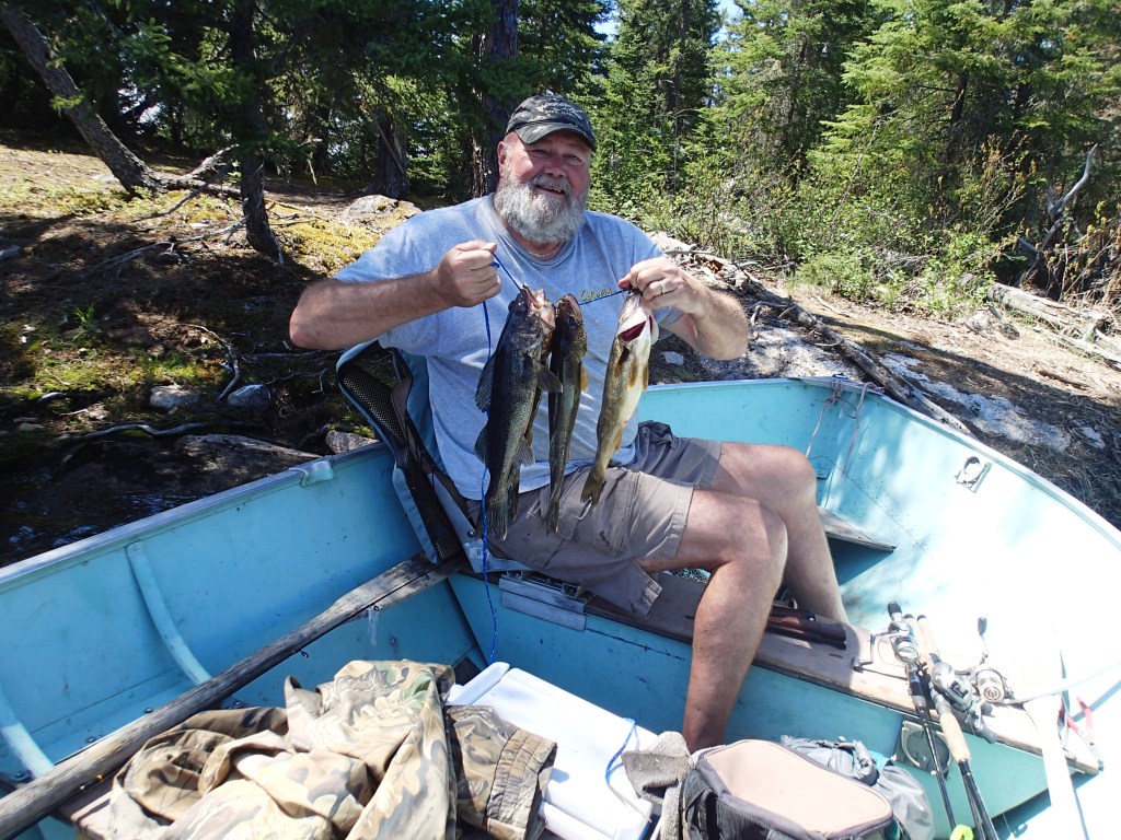 Ron and Tim hiked back to Lost Lake and found the two canoes right away. They put Mark’s old camo canoe in the water and caught several Northerns as they paddled along the shorelines. Exciting to see the Northern swim up to the lure in the crystal clear water. A fun way to spend a beautiful day!