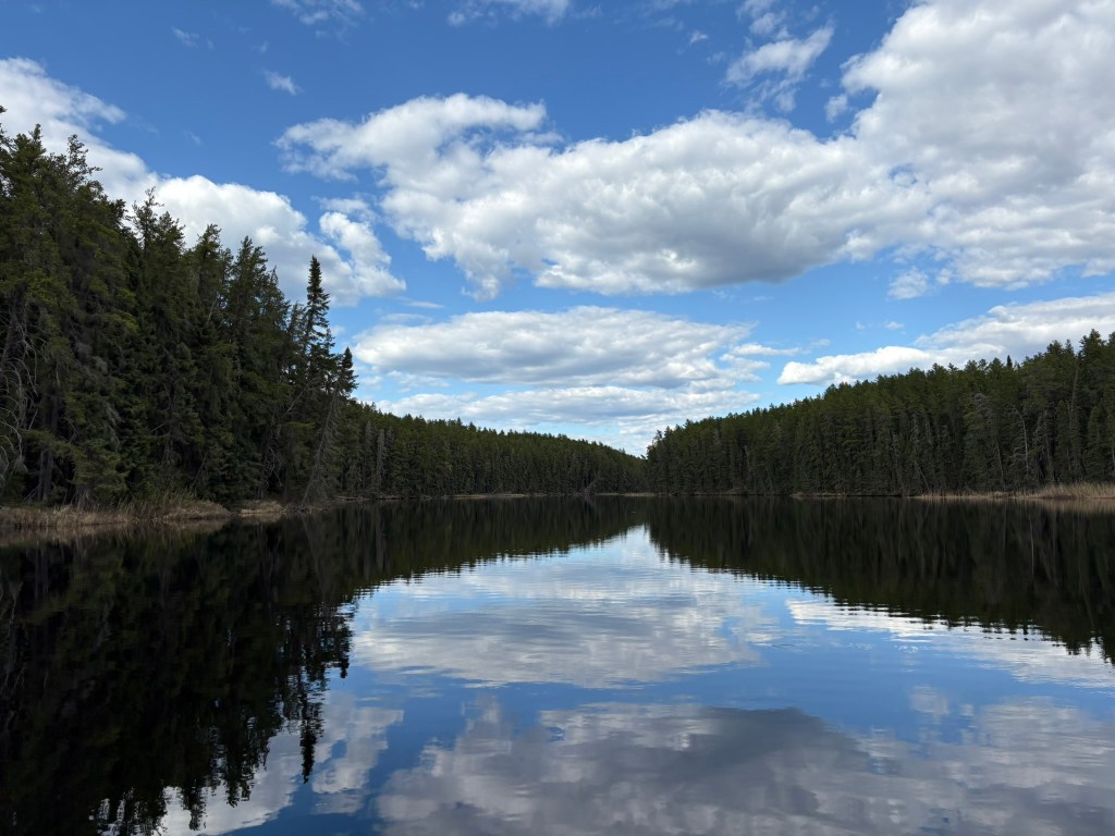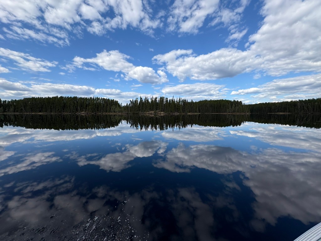 Surface water temperatures reached 65 degrees – a 15 degree increase in 4 days! The blue skies with puffy clouds made for an incredible reflection on the calm waters on our last evening on the lake.