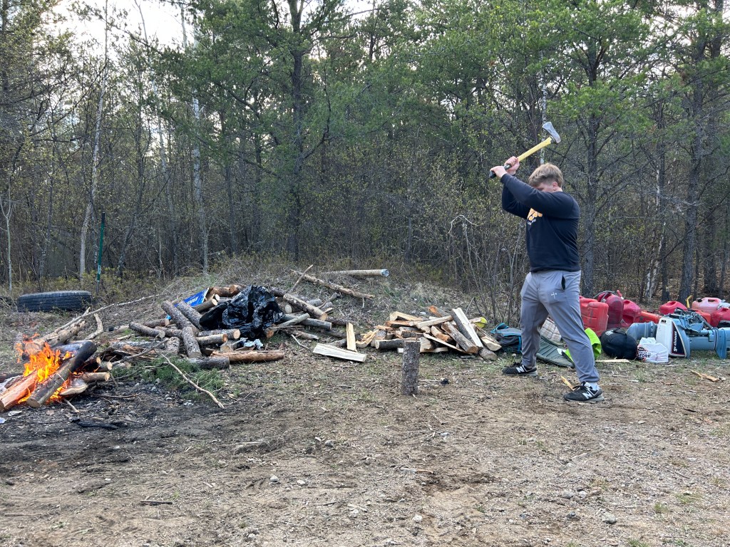 We came back to camp for a great fish fry with onion rings and baked beans. Tim and Mark hauled up some more firewood.