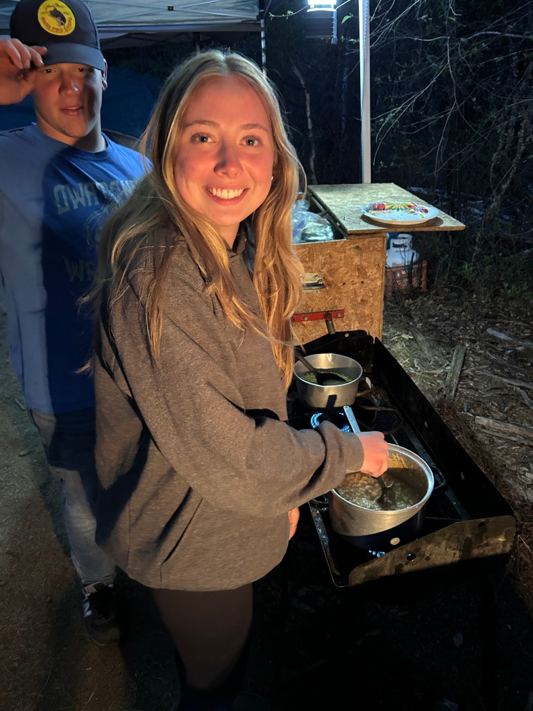We went back to camp at the end of another good day of fishing and exploring. With the help of Ron, we prepared blackened Walleye fish tacos, with dirty rice. A camp favorite!