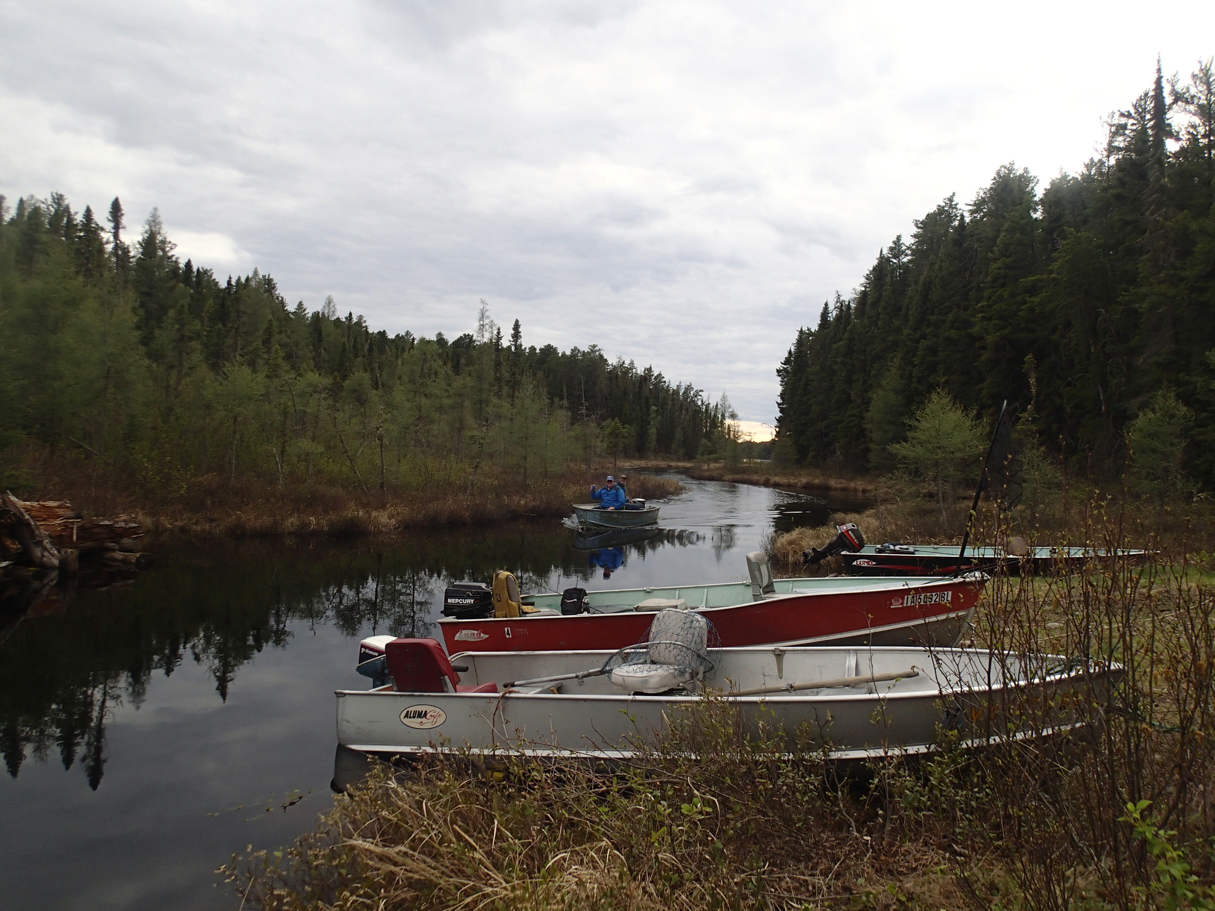 Overcast skies, but much warmer. French toast and sausage were tasty. The boats at the landing were ready to go!