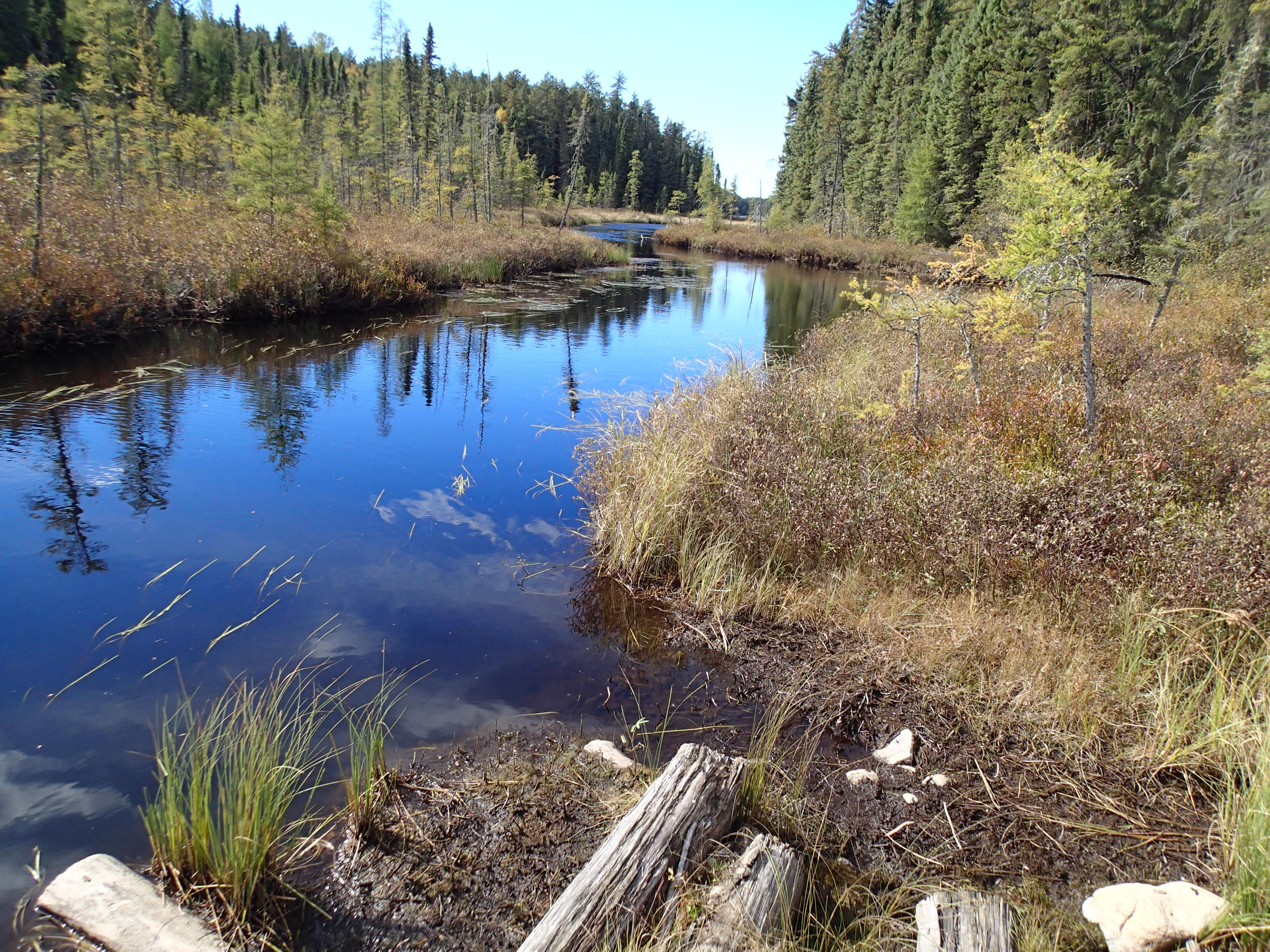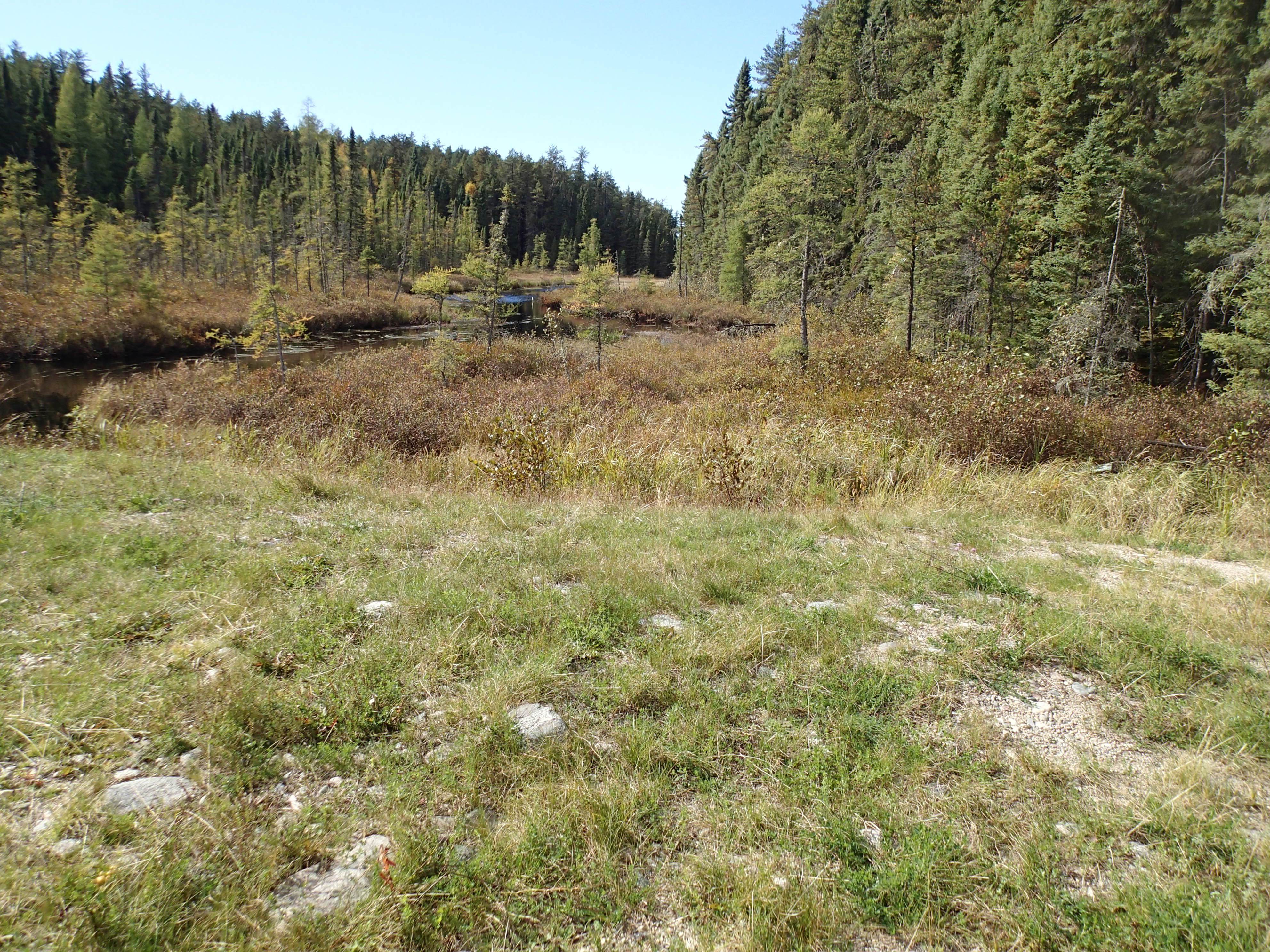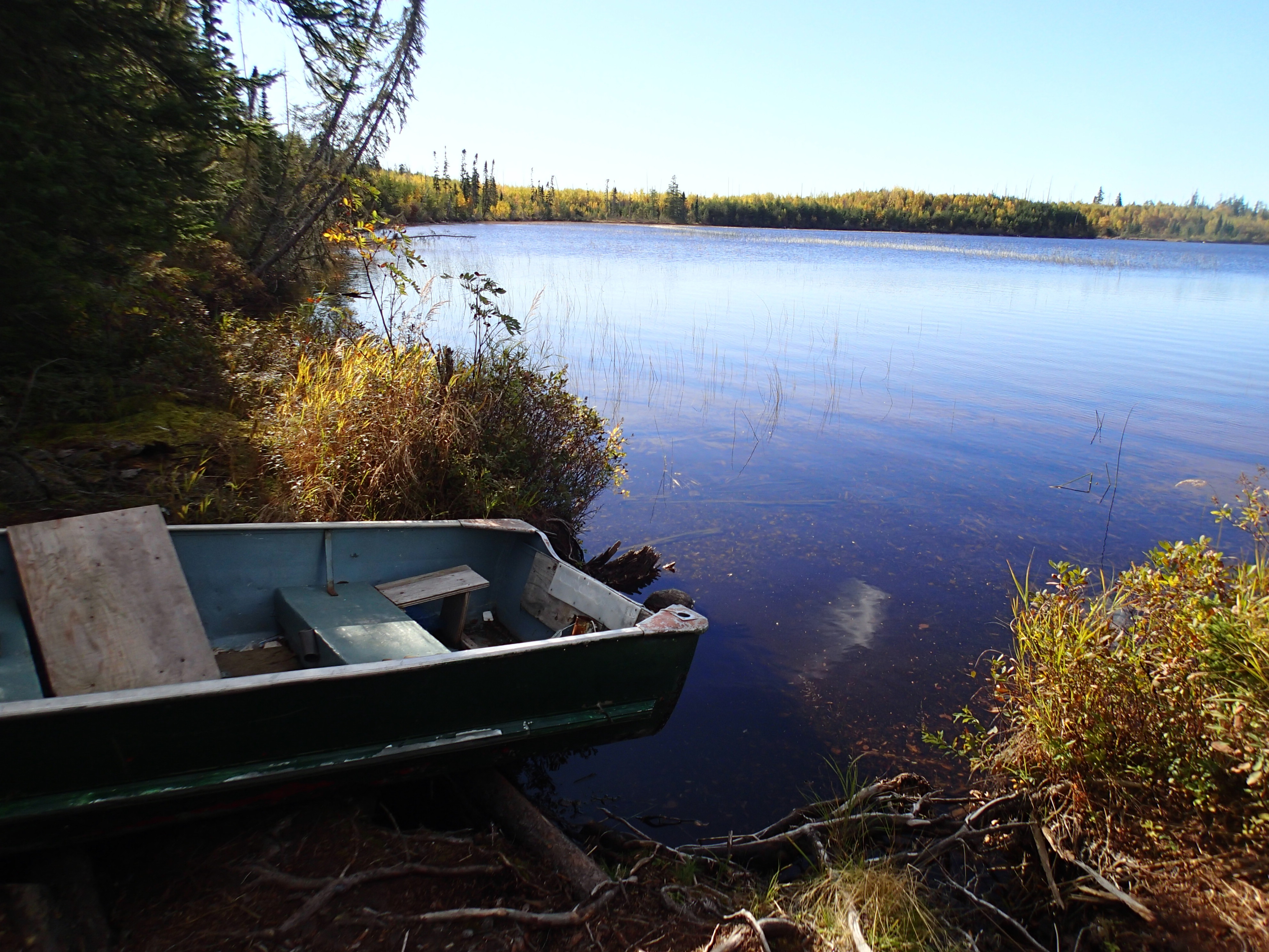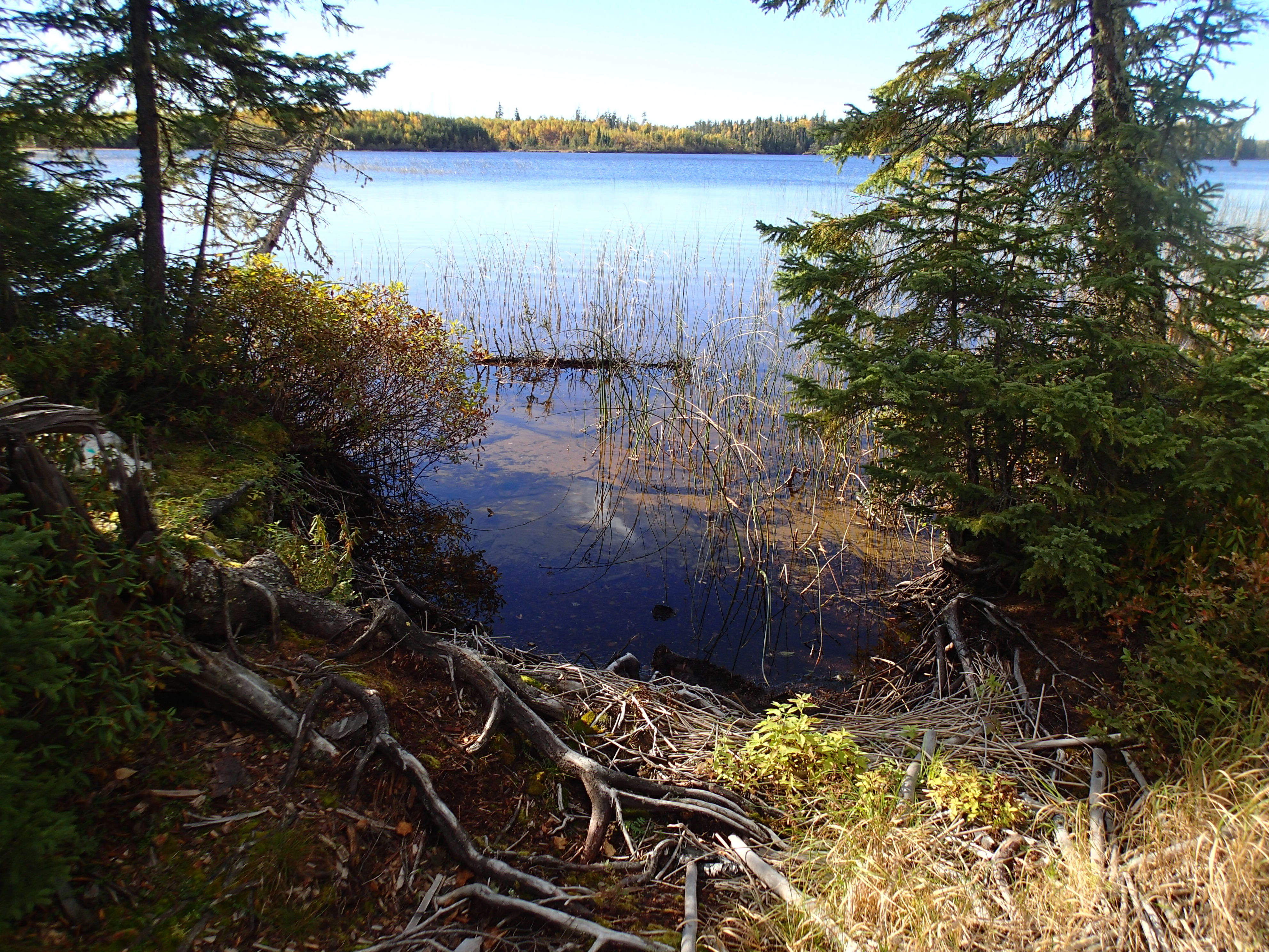 1,130 mile trip to Canada over a long weekend. Drove up Friday October 2 and back Sunday! After the beaver dam blew out our road in August, we needed to find another access point on the East side of the lake. In fact we found 2 access points. One where the logging company removed the bridge is the best access. Scouted some potential camp areas. Found a real nice camp that we used for 2 nights, but 6 miles from the bridge.