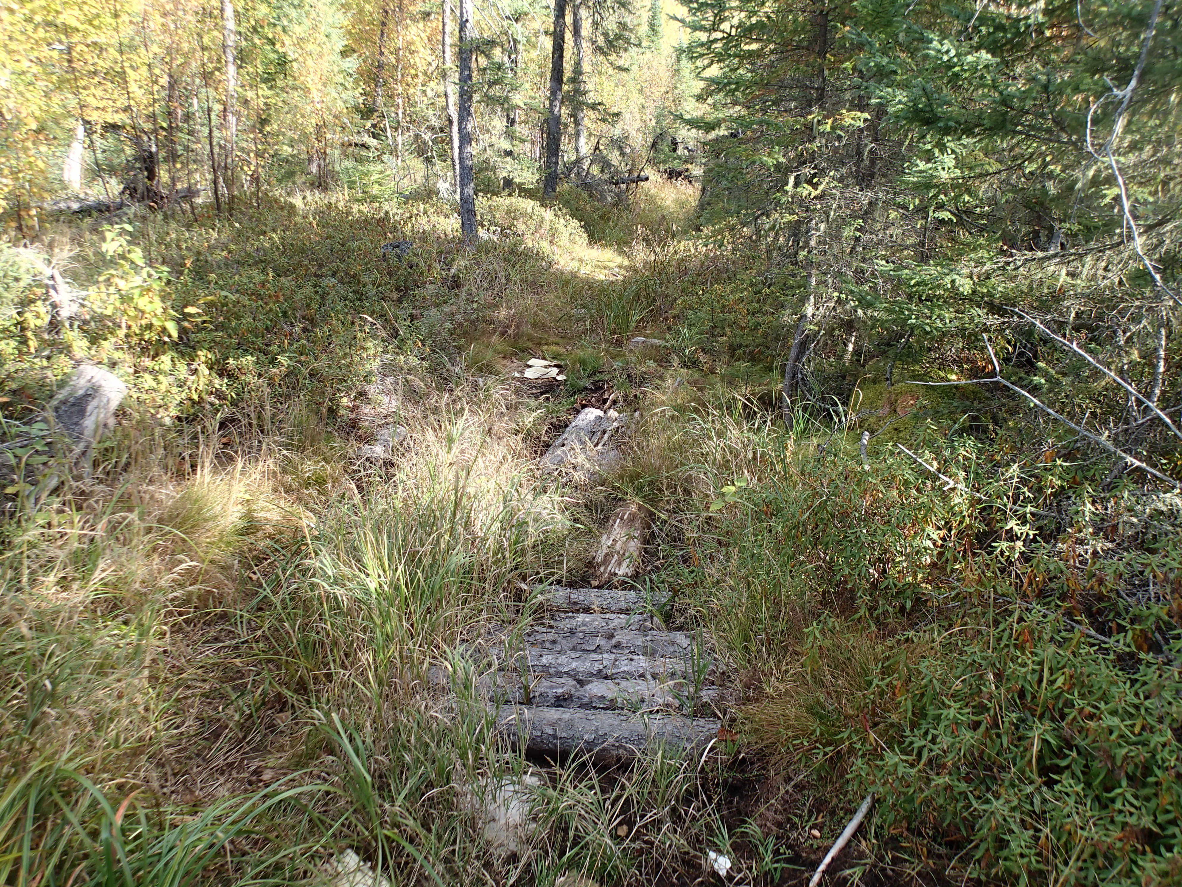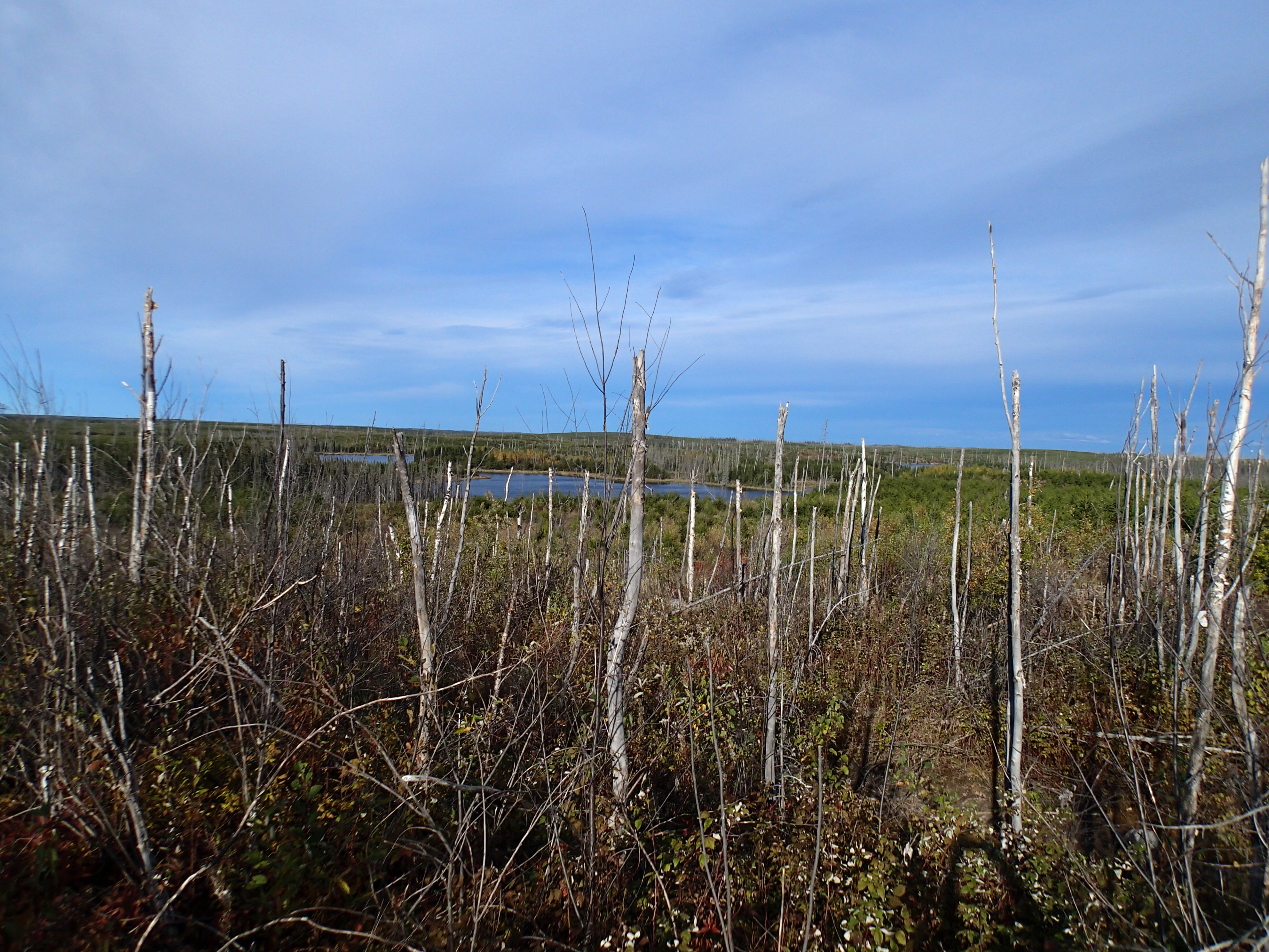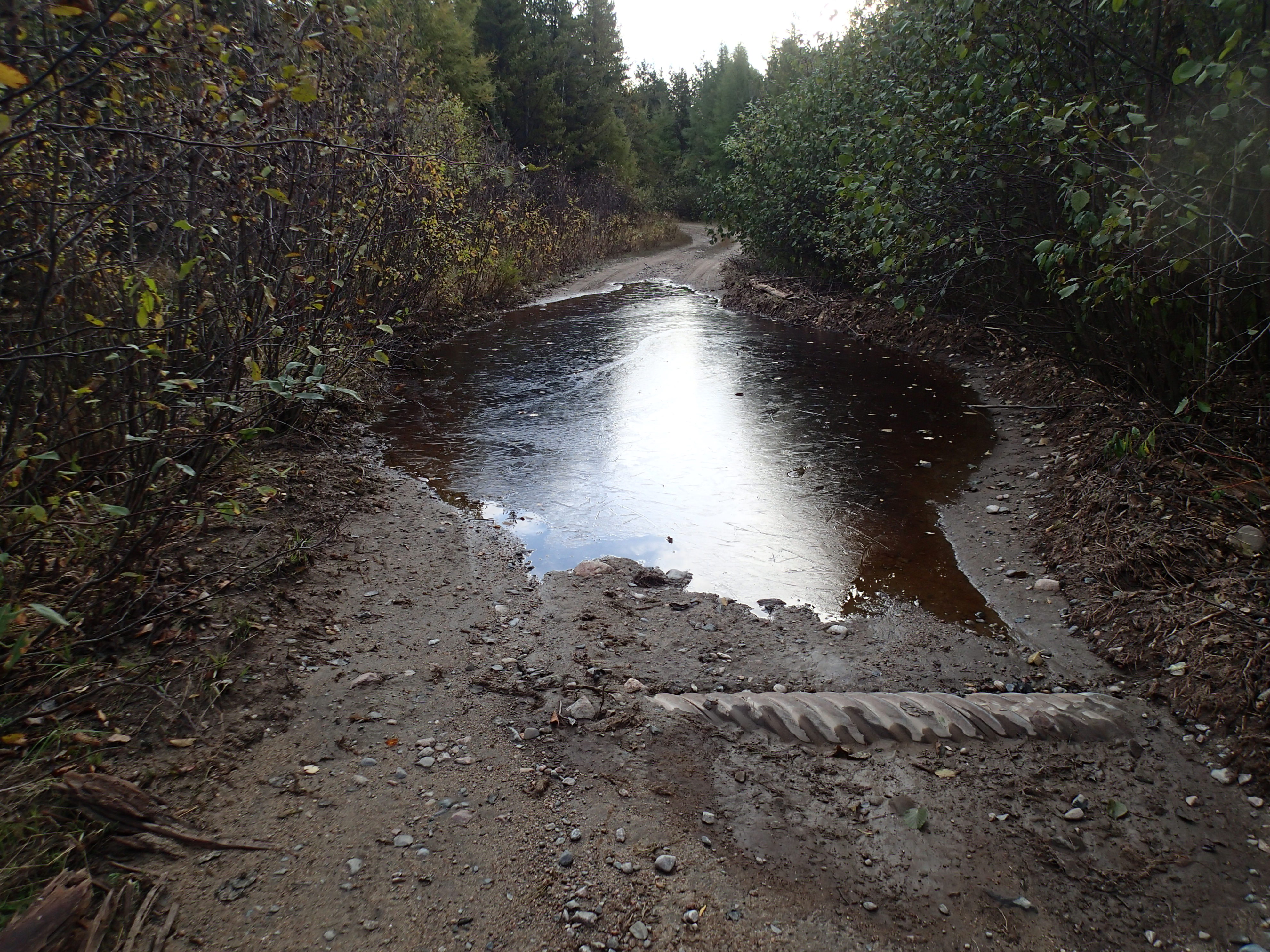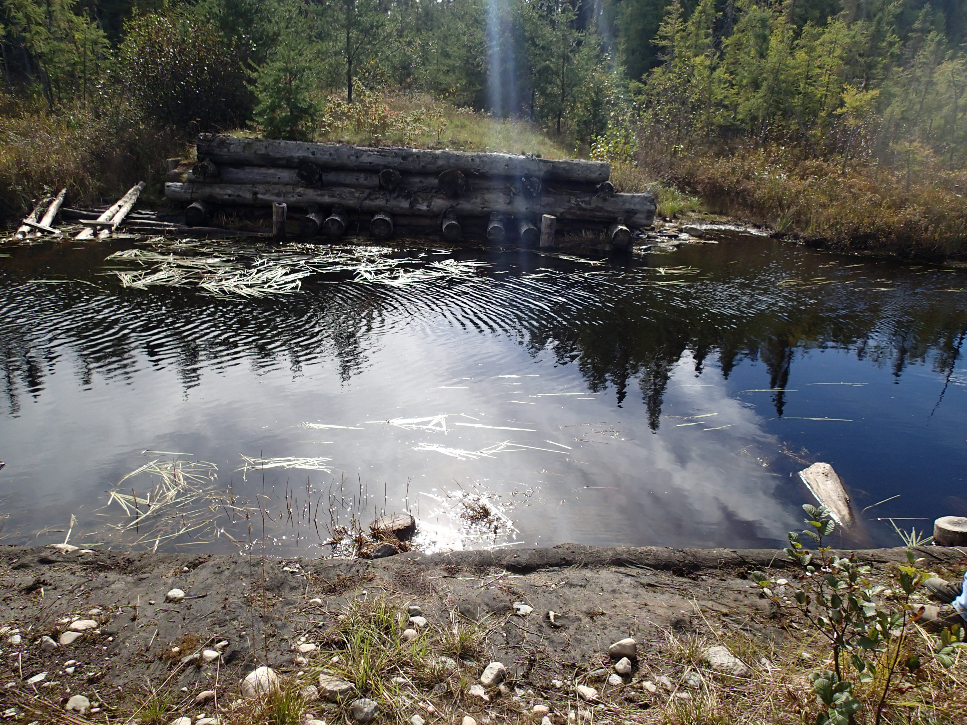 1,130 mile trip to Canada over a long weekend. Drove up Friday October 2 and back Sunday! After the beaver dam blew out our road in August, we needed to find another access point on the East side of the lake. In fact we found 2 access points. One where the logging company removed the bridge is the best access. Scouted some potential camp areas. Found a real nice camp that we used for 2 nights, but 6 miles from the bridge.
