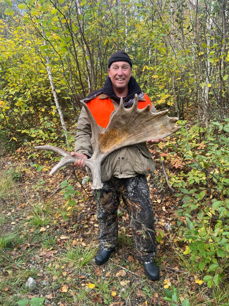 Jim explored the road to the Far Back Jack lakes. John and I walked back to the old moose hunter camp that we visited in October 2015. John found a huge moose antler!