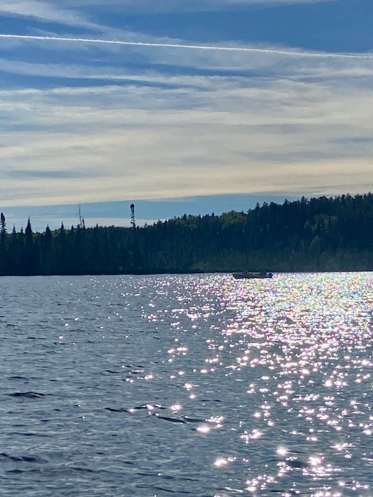 I picked up Fred at Eagle River Hospital (Thanks Kris) at 8:15 and arrived in Two Harbors MN at 12:10. Put gas in the truck and we had lunch at Culvers. Jim and John had to stop at Mark Wanous’s house to pick up cousin Mark Cunningham’s Mariner motor and tank, so they were running late. Cloudy and rain off on during our trip the North Shore of Lake Superior. Traffic was heavy driving south at the end of a weekend, but little traffic going North with us.