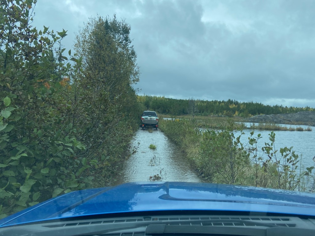 The road was in pretty good shape, we did not have to stop to remove trees. The washout had a pretty solid base. The brush was thick in places.