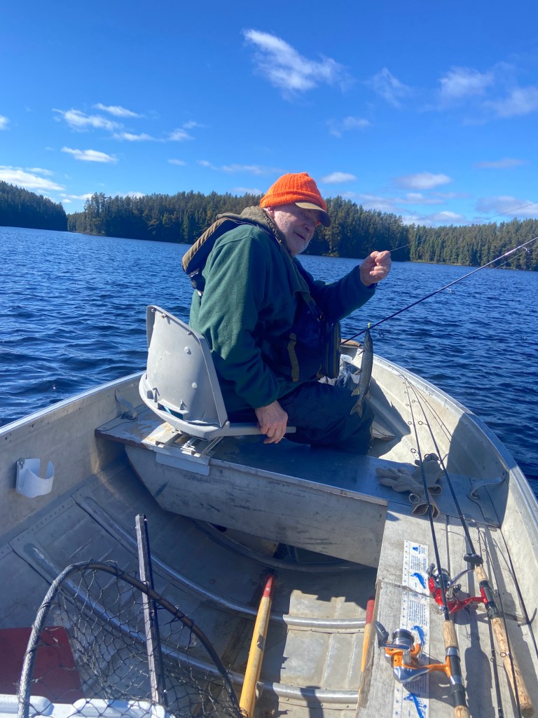 Back to camp for a hearty breakfast of biscuits, sausage and gravy with eggs. Got ready for fishing and with Jim’s help, we were off at 1:00. Mark’s Mariner motor worked great in April and it started fine, but John could not get it to keep running, so we towed them back to camp.